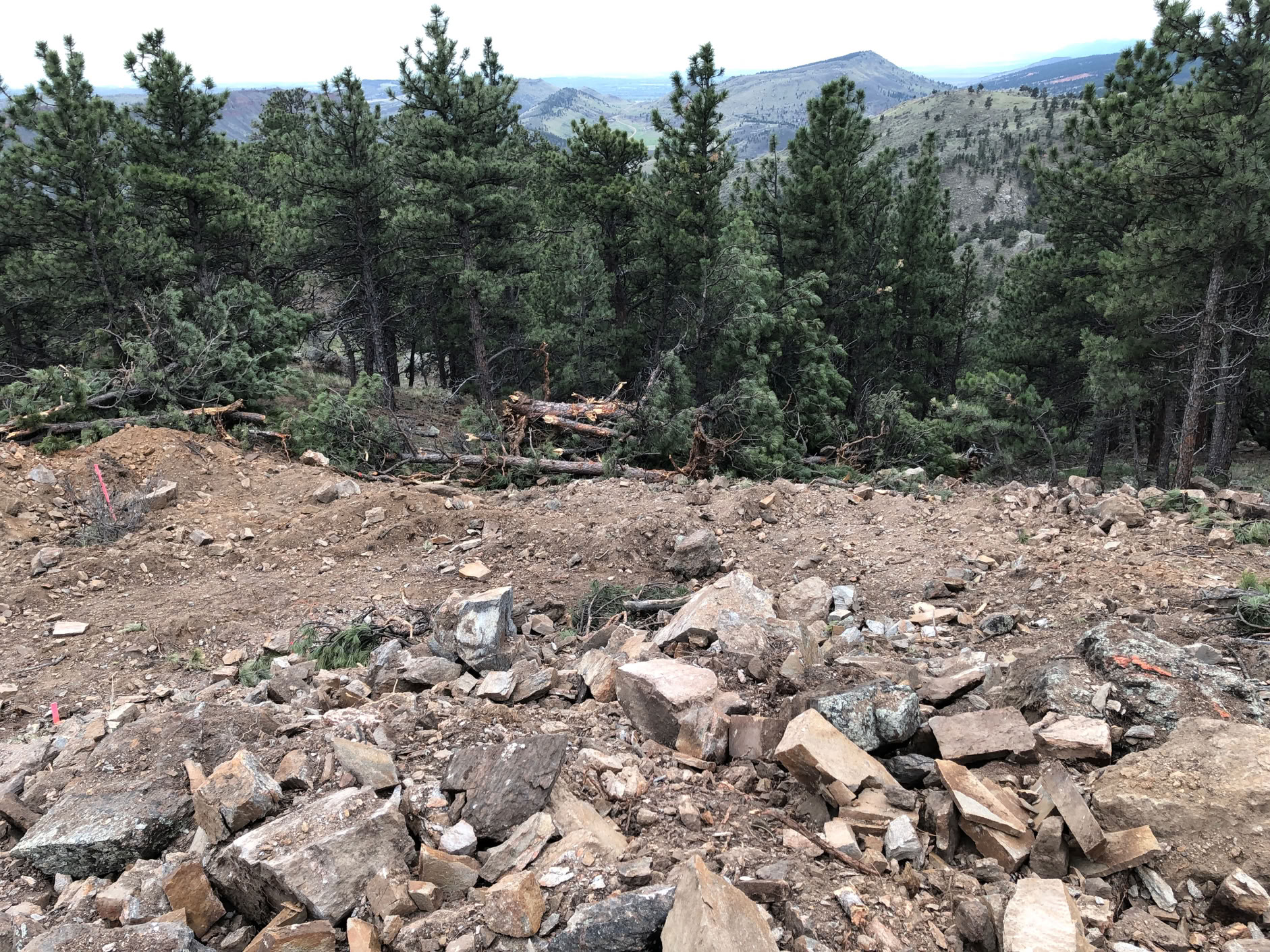 We managed to miss the first blast, which happened on Saturday, April 27, 2019, but we did get up on Monday just before clearing the debris from it began. This was the blast that cleared the small part of the upper floor where the rock ridge needed to be removed and also cleared out the part of the mountain that was above where the lower floor is.