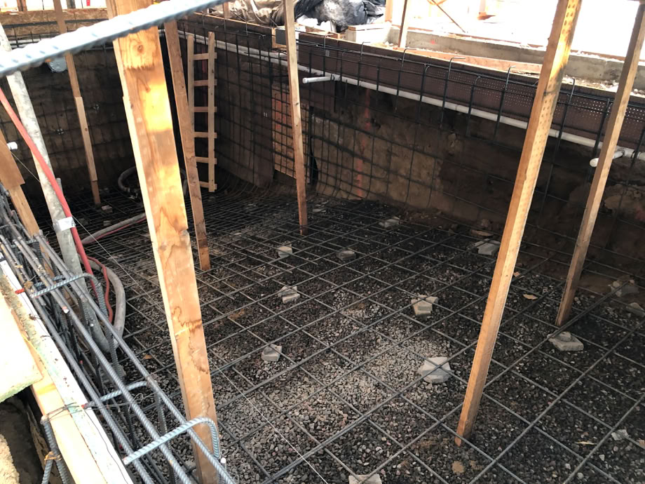 The pool uses a completely different and much less expensive way of placing concrete. Instead of building complete forms, like was done for the walls, a pool’s interior dimensions don’t have to be exact, so only the outer form is roughly constructed and the concrete is “shot” into place. This process is called shotcreting and we’ll get to see exactly how it works. There will be 32 yards of concrete shot today!