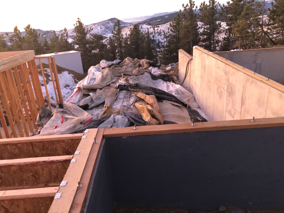 It’s now 7:00 and the sunrise color is being picked up by some mountain wave clouds to the west of us. That pipe in the foreground is what will carry the concrete from the pumper to the flex house in the pool.