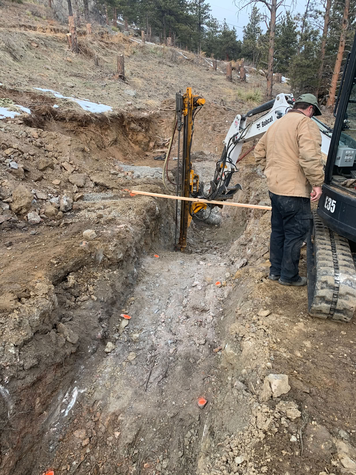 One of the framers shot this. It shows how the shots are placed to blast a narrow trench - alternating on each side of the trench.