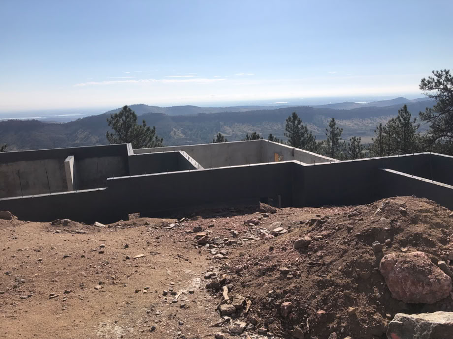 The damp proofing covers the top as well as a bit of the inside, to make sure that water is forced to go down to the french drain that goes completely around the house at the level of the 24” footer. This drain is a multipart system of 4” perforated PVC pipe and water-permeable landscaping fabric.