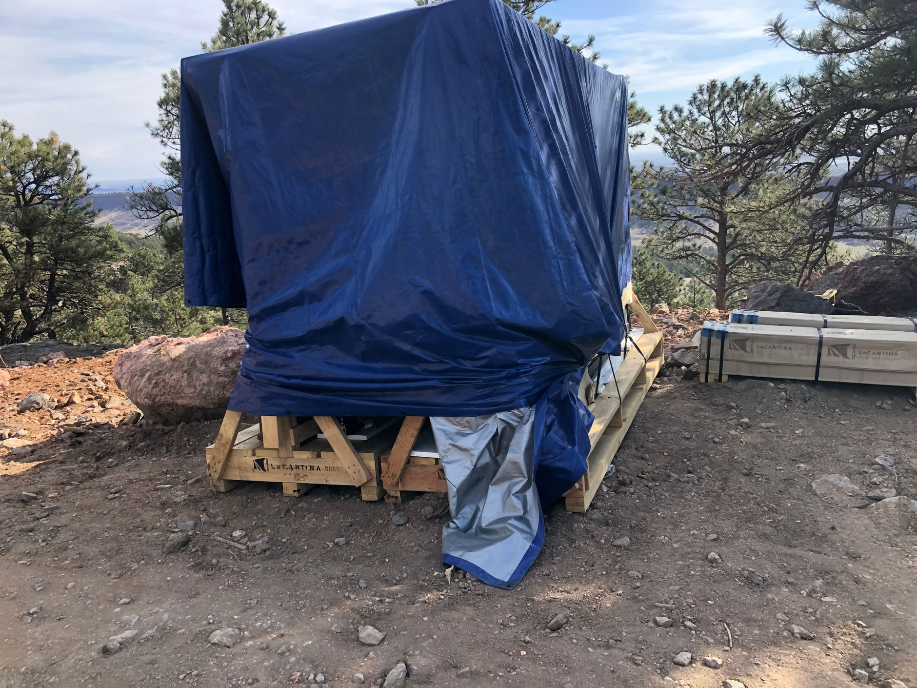 Before getting to the roof, the La Cantina moveable glass walls have arrived! That’s about 3,600 pounds of mostly glass. There are 6, 600 pound panels. They had a wall very similar to this installed at the showroom and they move with just a couple of fingers. The secret is the large urethane wheels they roll on. These aren’t lift and slide either, they maintain their full 160 mph wind rating wherever they are on the track.