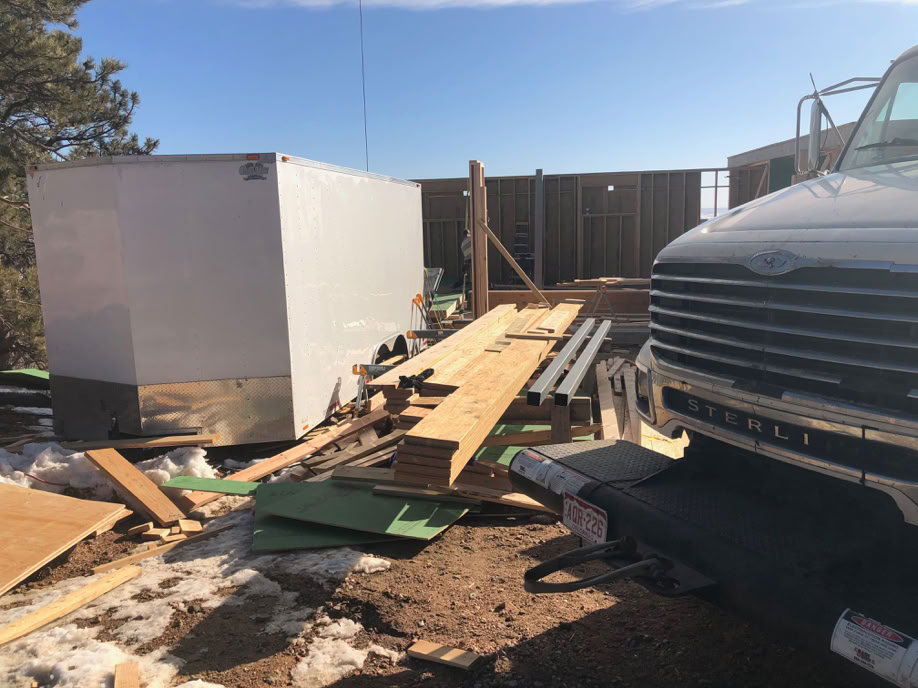 Here’s some of the roof structural members and the two pieces of steel box are the upper level kickers. It looks a bit chaotic, but when the weather is good in Colorado in the winter time, you build!