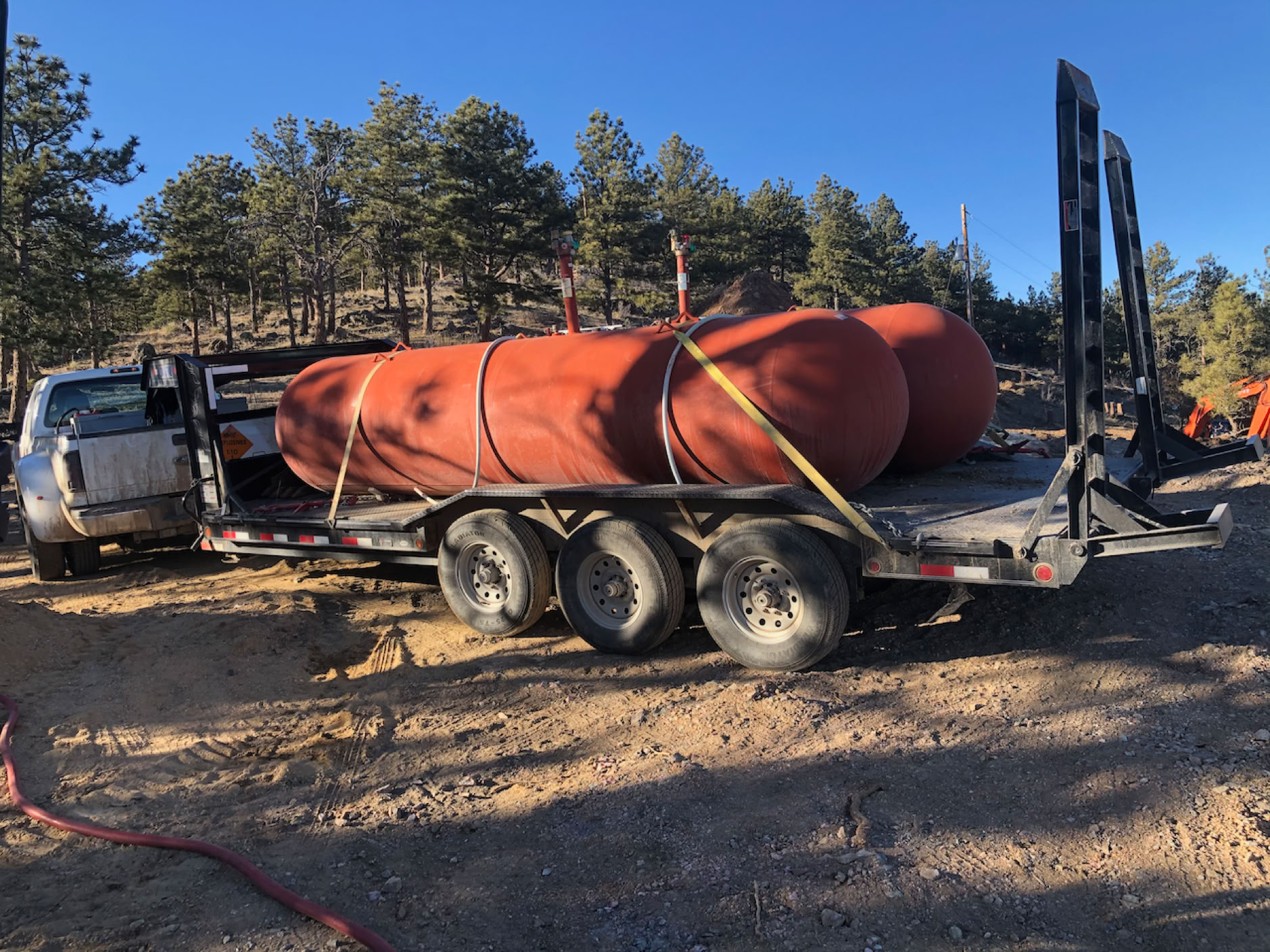 The propane tanks have arrived on January 3, 2020. Those monstere are 16 feet long! It’ll be a week before the fine gravel bed they’re placed on is ready and the crane is up to place them.