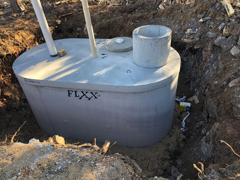 The fire cistern. This is manufactured by Front Range Precast Concrete. Its a 2,400 gallon tank, 12’-8” long, 6’- 8” wide and 8’-1” high to the top of the access hatch on the right above. It weighs 17, 775 lbs!