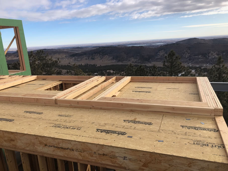 The propane tanks and utility trench are backfilled and more of the upper level framing is done.