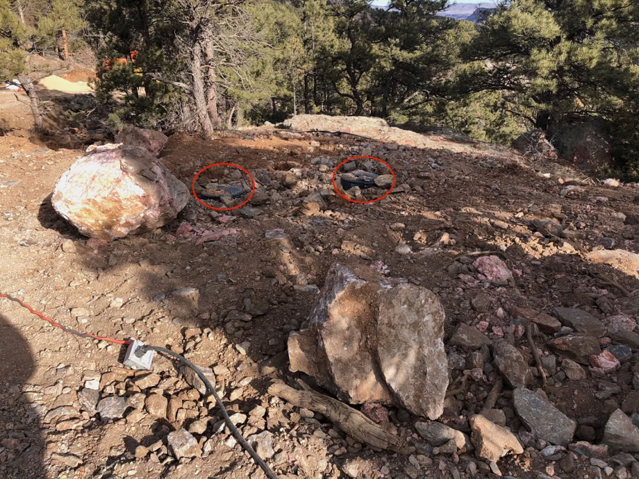 The red ovals show where the access hatches to the now buried propane tanks are.