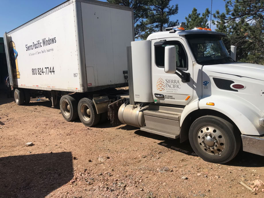 Here’s what brought all of the windows up. It’s pretty much full and has about 50,000 pounds of windows in it, pushing the rig to about 70,000 pounds, about 10,000 under the maximum permitted road weight of 80,000 pounds. Glass is heavy!