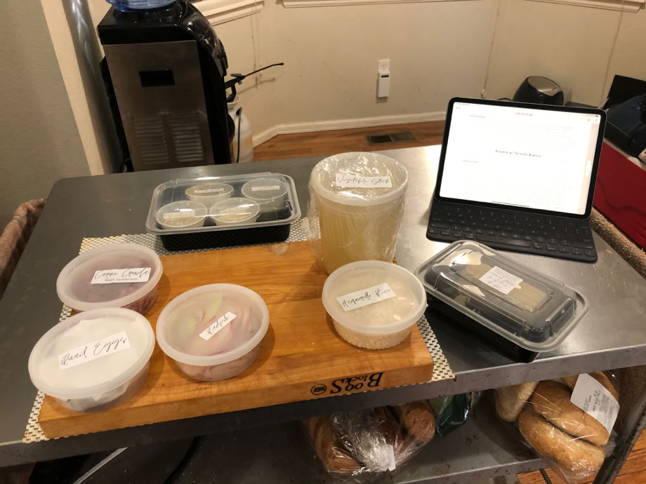 So, it’s time for At Home With Frasca again! Frasca had the neat idea of letting us participate as the final step in Auguste Escoffier’s Brigade de Cuisine. They have the Chef de Cuisine, Sous Chef, the Poissonier and the Patissier do all their pre-meal time preps and package the complete Mise En Place. We then take it home and do the job of the line cooks at home in our kitchen.