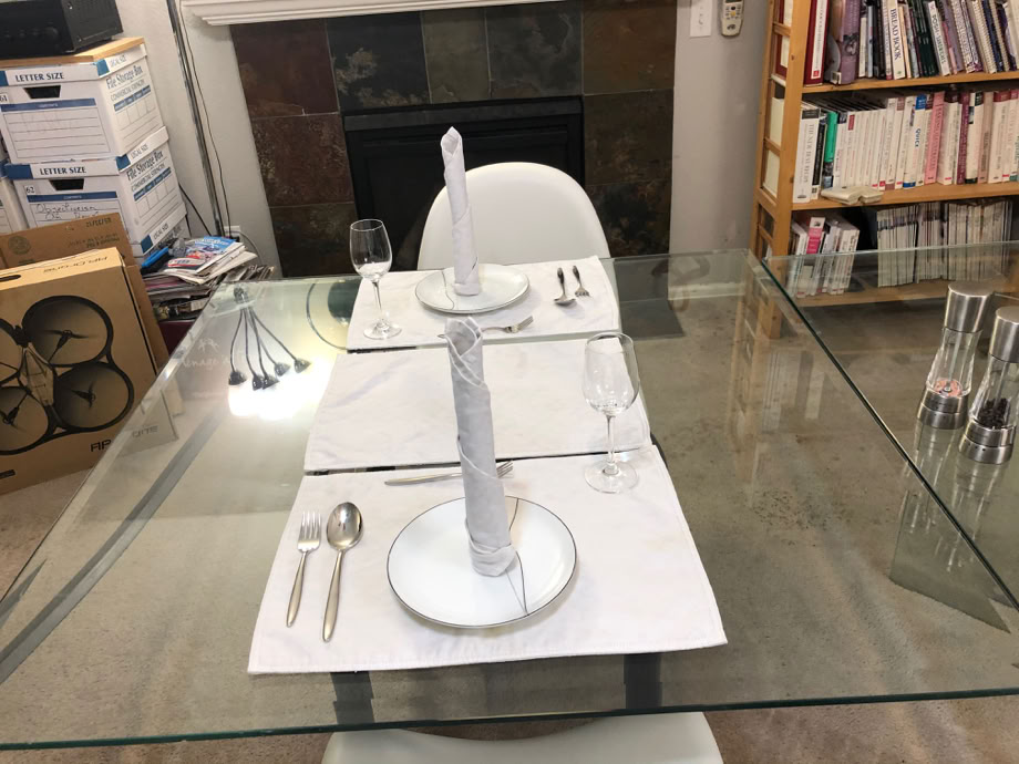 We used the candle fold on the napkins. A truffle dinner requires elegance!