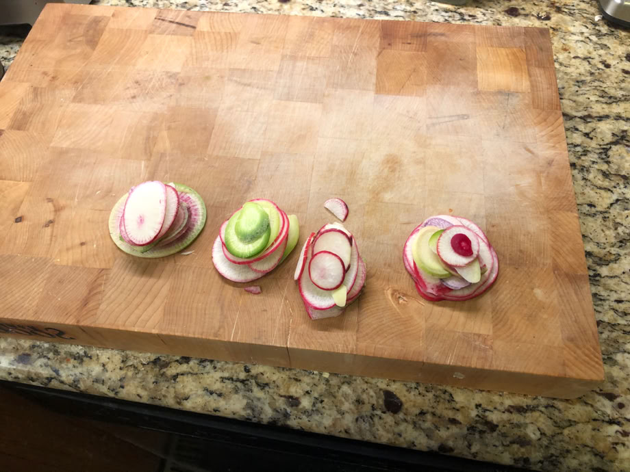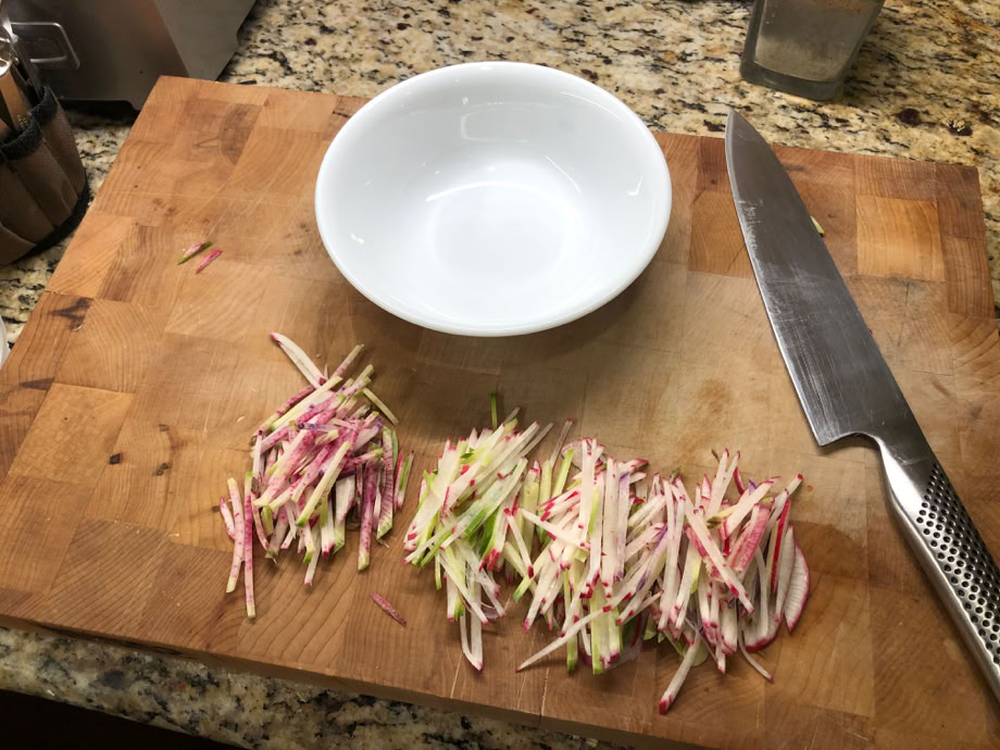 And after. The two different colors of radishes add a bit of visual appeal to the dish.