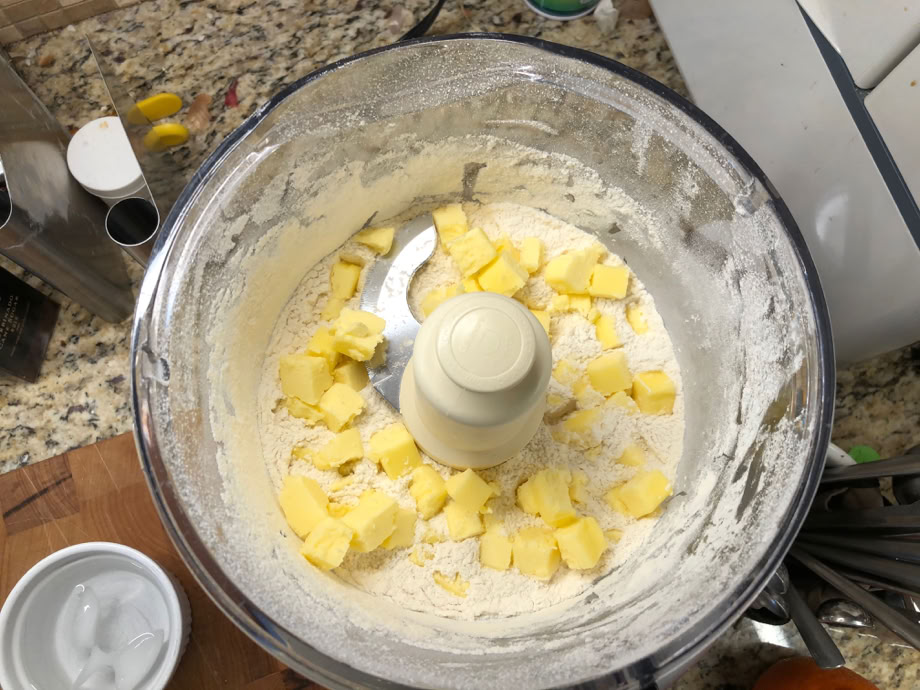 This is a very buttery crust! This is all of the cubes and the flour in the food processor bowl.