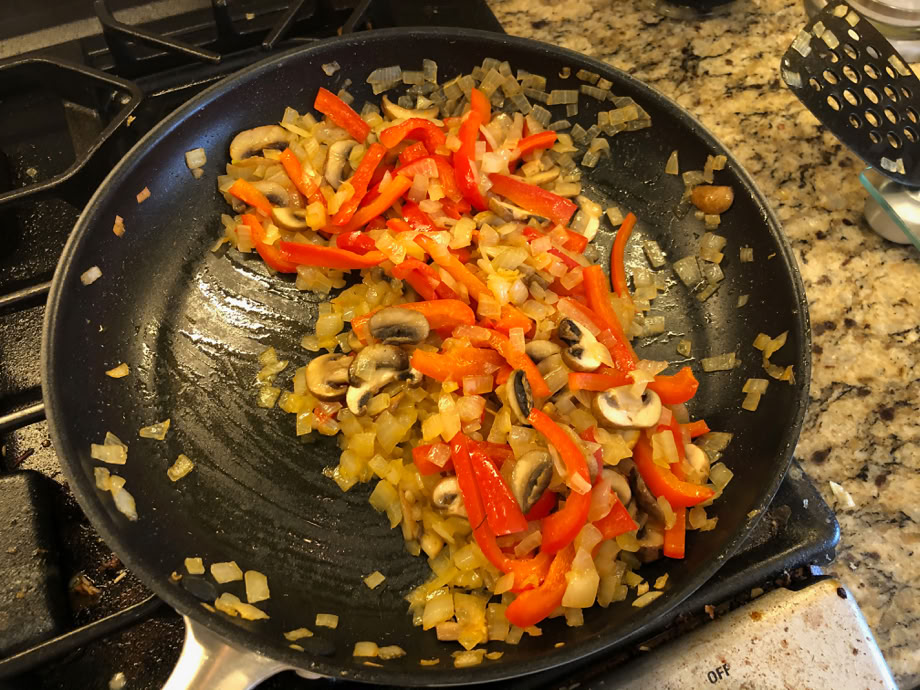 We think that a good cheesesteak needs mushrooms, onions and bell peppers. That turned out to be a bit more bell pepper than needed.