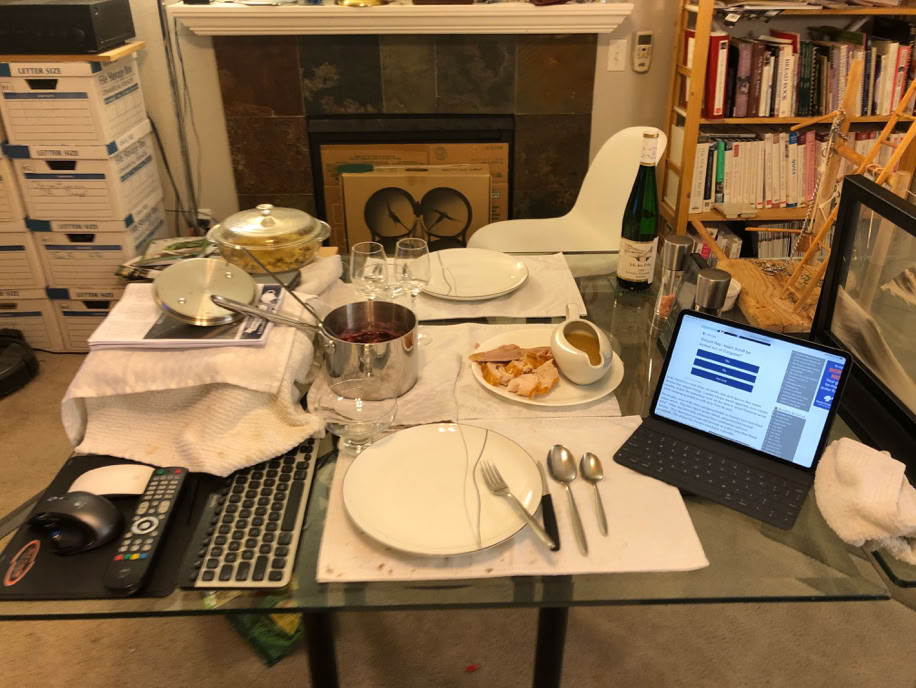 The turkey is in the oven for it’s breast up roast and we’ve got some time to get the table ready.