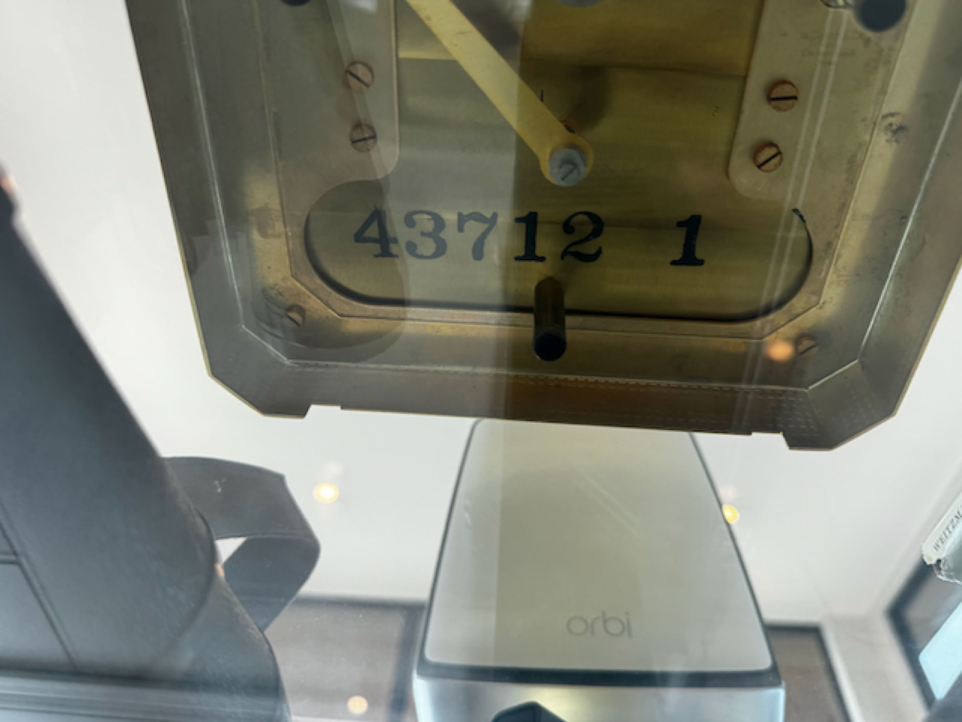 The only identification number that Martin has been able to find is on the bottom of the clock. The lever you can see that goes from the center to the front of the clock, is the pendulum locking lever, used to transport the clock safely.