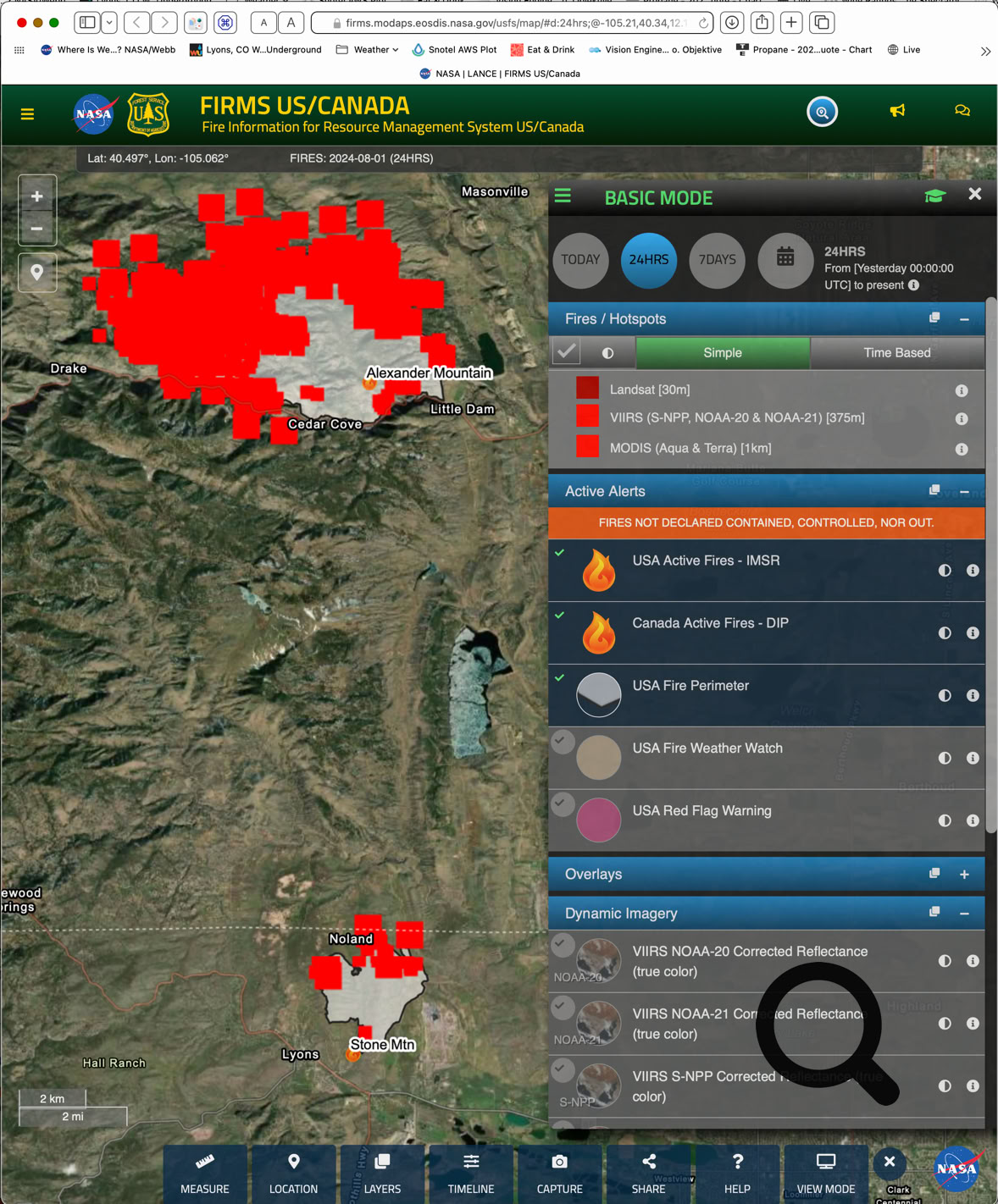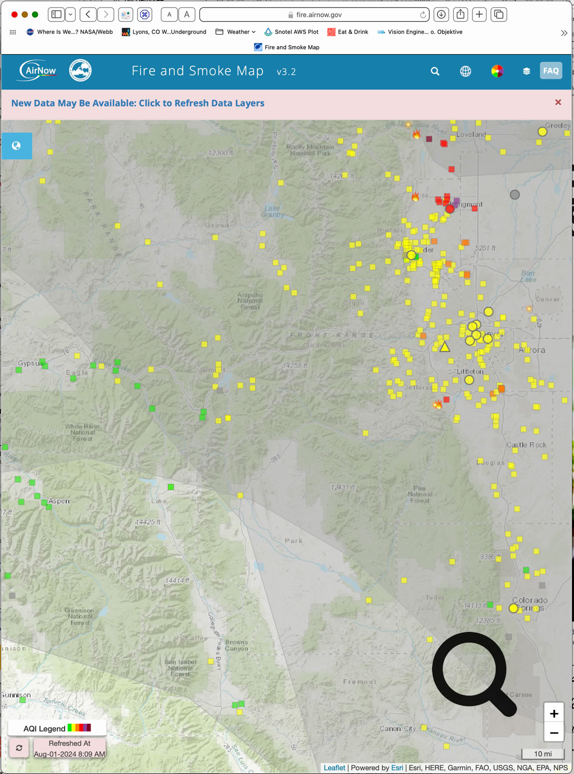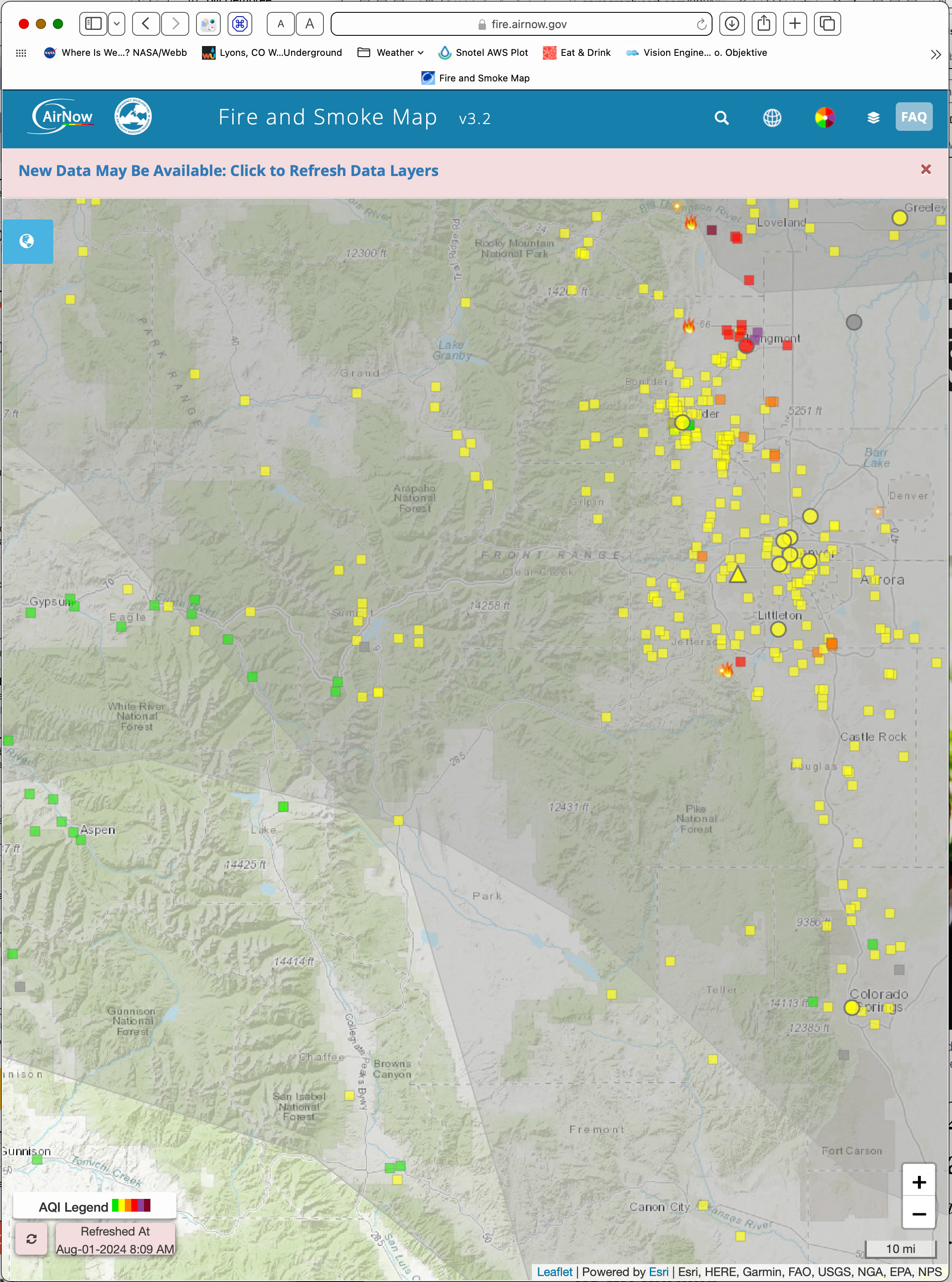We’ve been calm enough for long enough that all of the plumes have just merged into a dense even smoke cloud ☹️! You can really smell the smoke now. There are now four fires going in the front range: