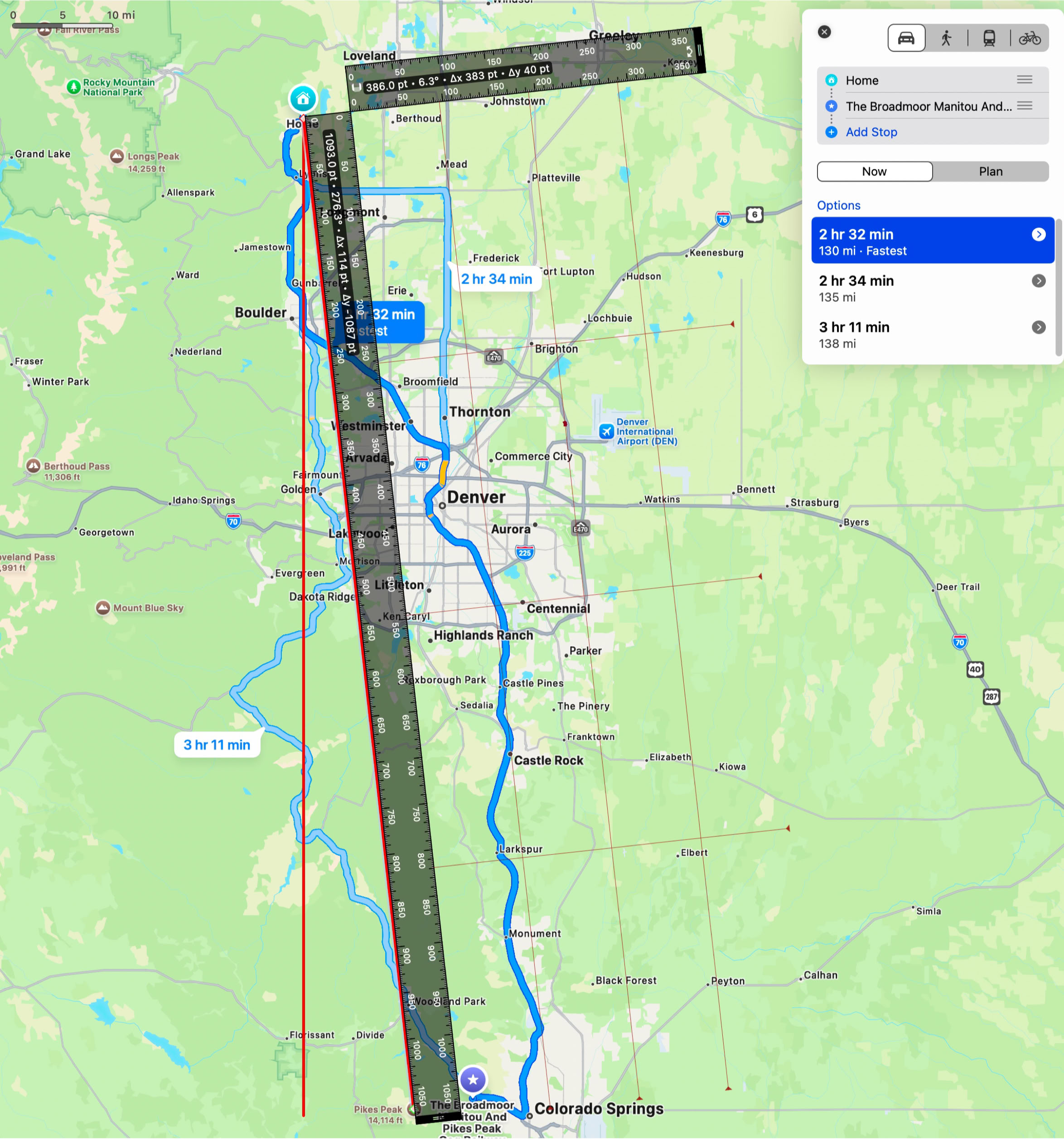 The rest of the theoretical situation, could we see it from this distance? From Pike’s Peak to us is right at 100 miles as the crow flies, but I put the 130 miles as the road goes into https://www.omnicalculator.com/physics/earth-curvature just to be pessimistic.