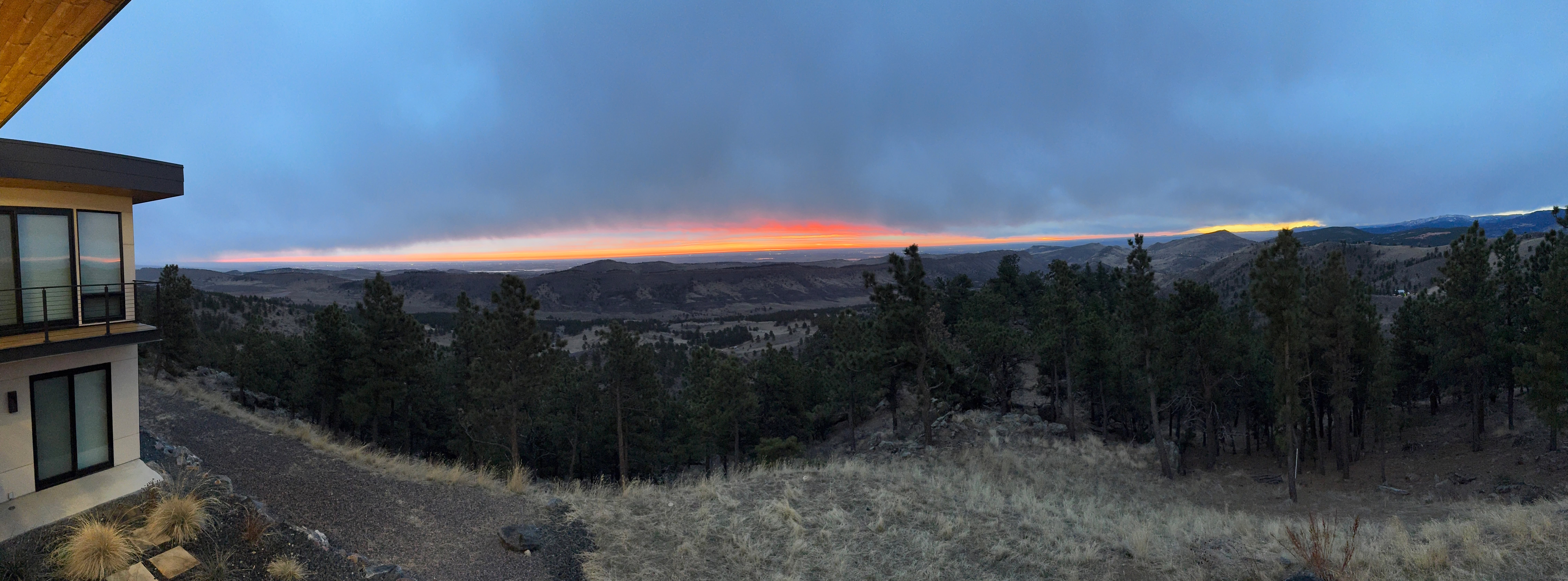 Here’s a panorama that Bill took that shows the whole sunrise, from the northeast at the left, to the southwest at the right.
