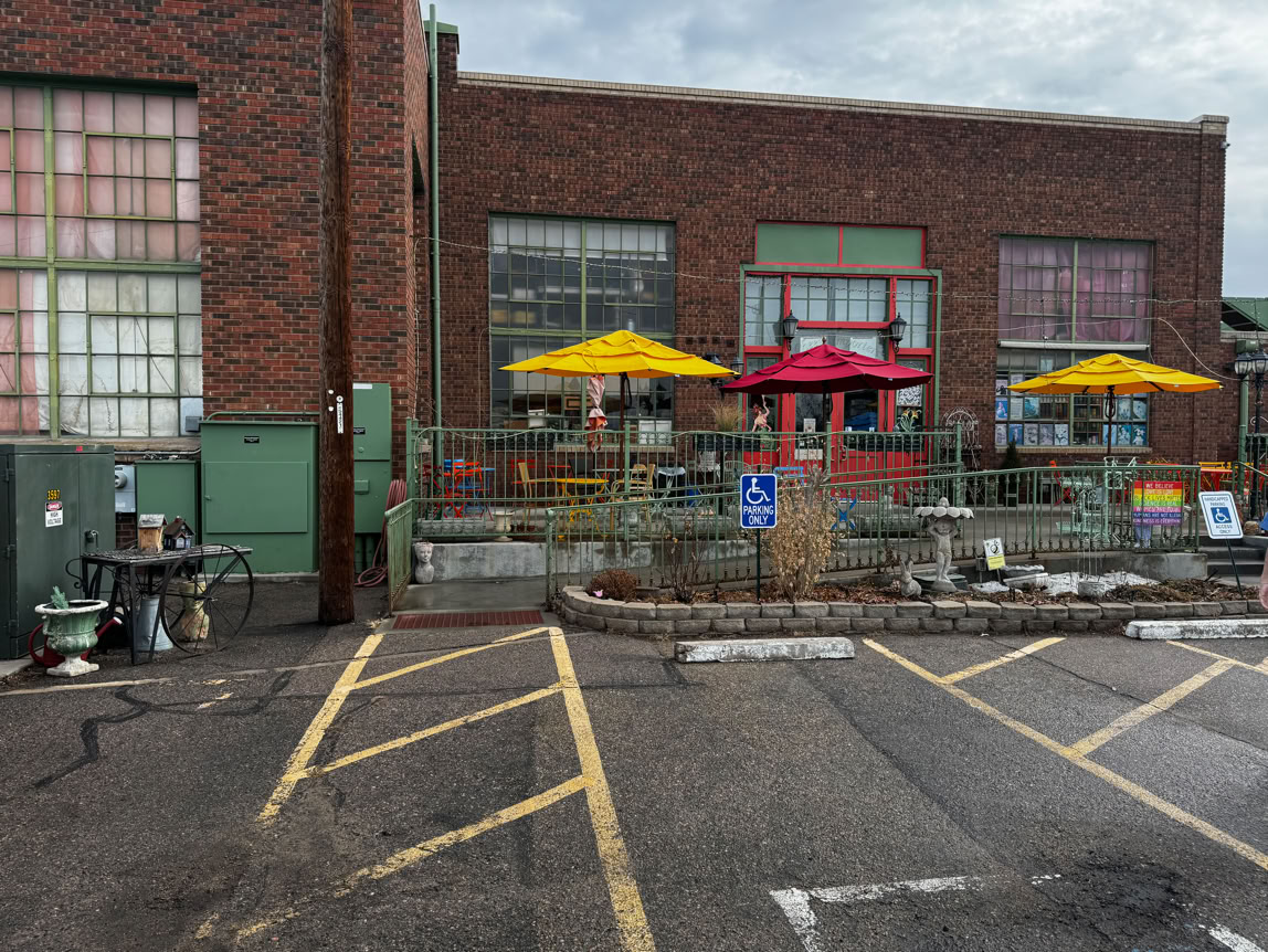 Here’s a perfect example of “Don’t Judge A Book By Its Cover”! The entrance is at the back of the building because the front is right on Main Street in Longmont and therefore all the parking is at the back.