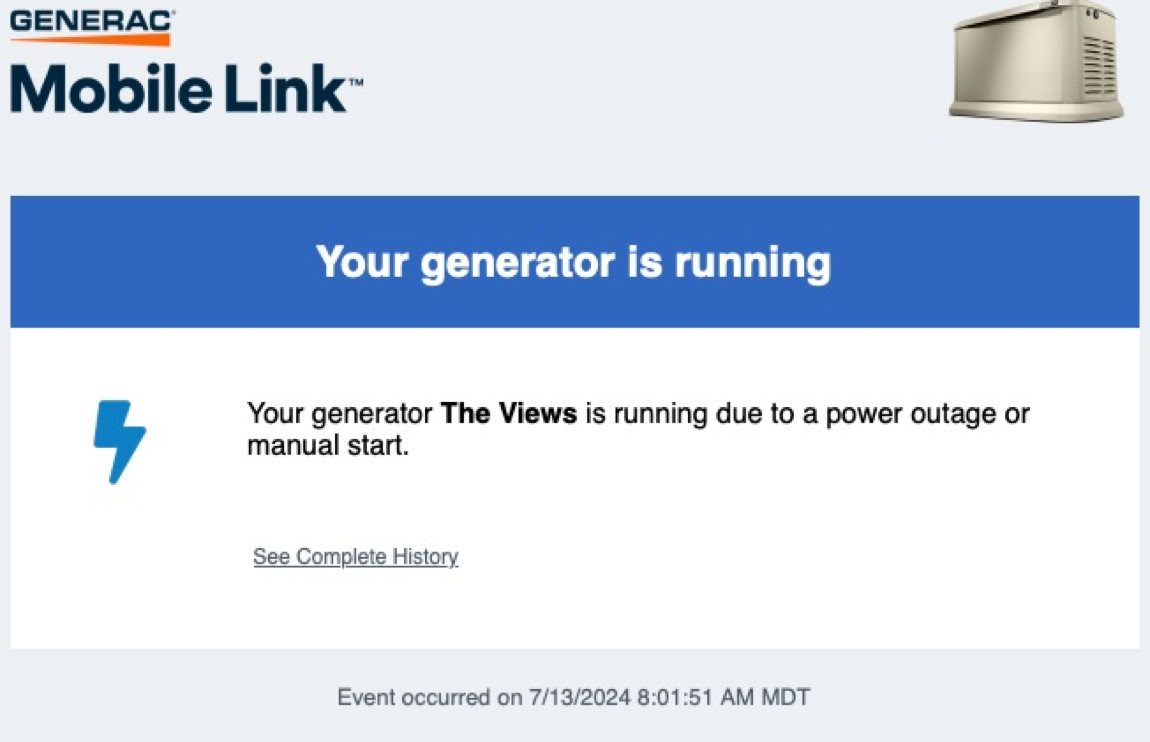 And we’re back on the grid after about an hour and a half.