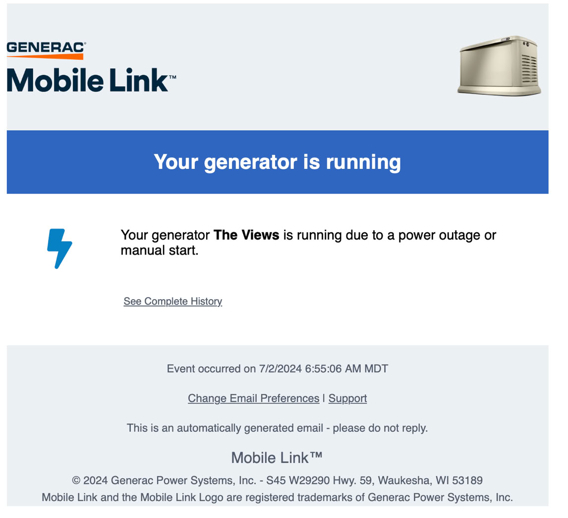 Well, this is interesting. Martin was on his computer with the lights in the office out waiting for Livingstone to wake up when he heard the generator start. The UPSs worked flawlessly so he didn’t notice a thing. Bill was in the Great Room, so he saw the power go out.