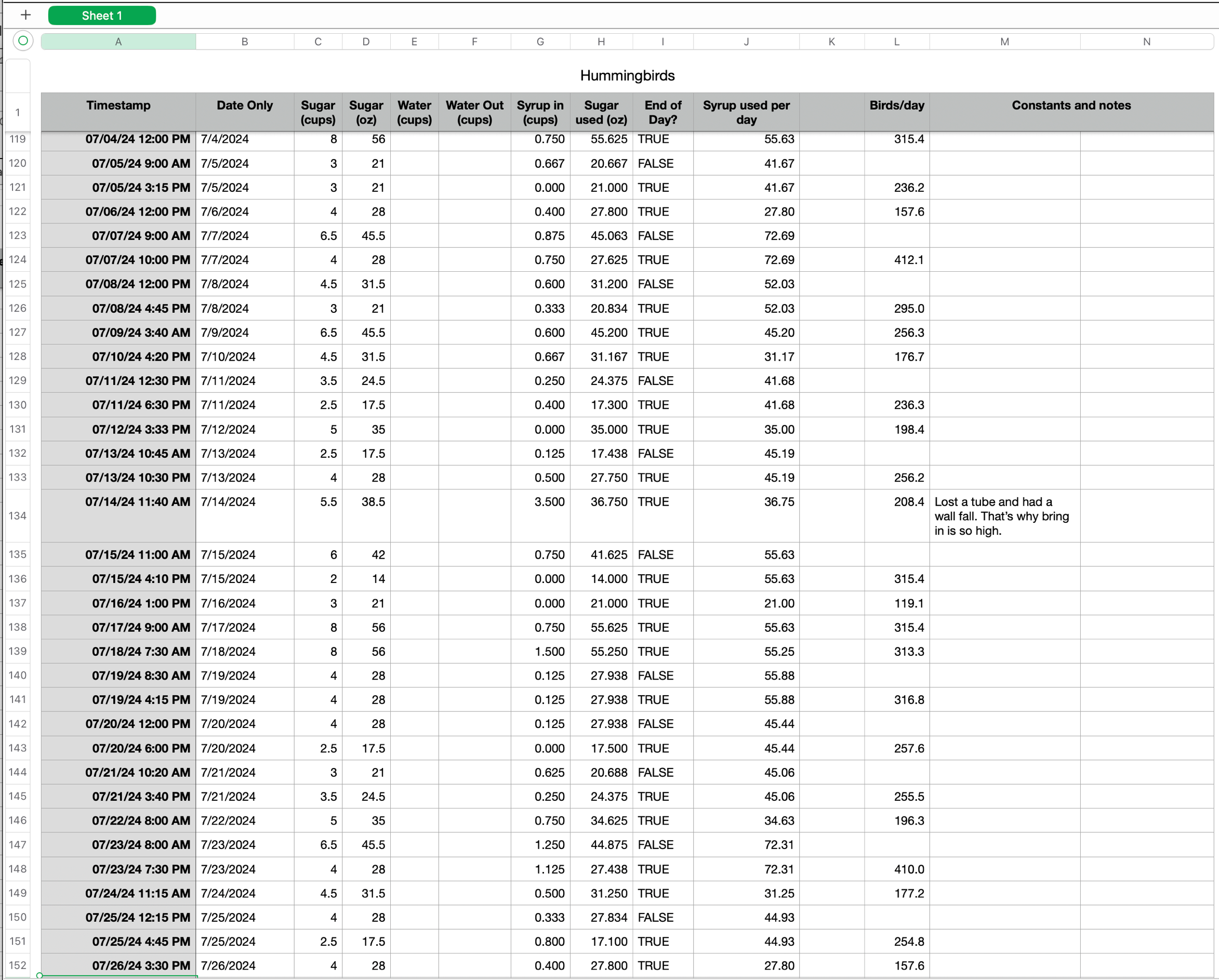 Wow! We’ve now seen 2 days where we fed over 400 full-time equivalent hummingbirds.