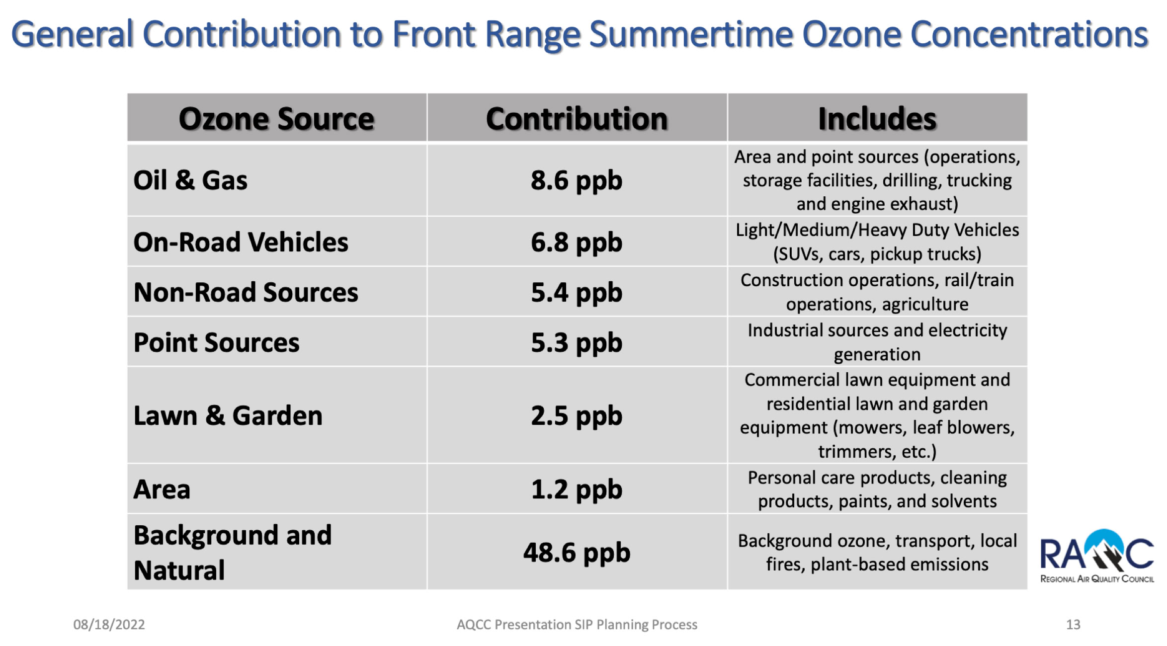 This chart is from folder 081822 in https://drive.google.com/drive/u/0/folders/17vtvBLIVbQpnpAY2UQoQWfyLnnurAT1L and it shows why it is completely ridiculous to regulate the Oil & Gas Industry - the natural ozone contribution is about 5.5 times that of the industry. If there was no oil and gas industry the EPAs rules would say that the front range was a non attainment area!
