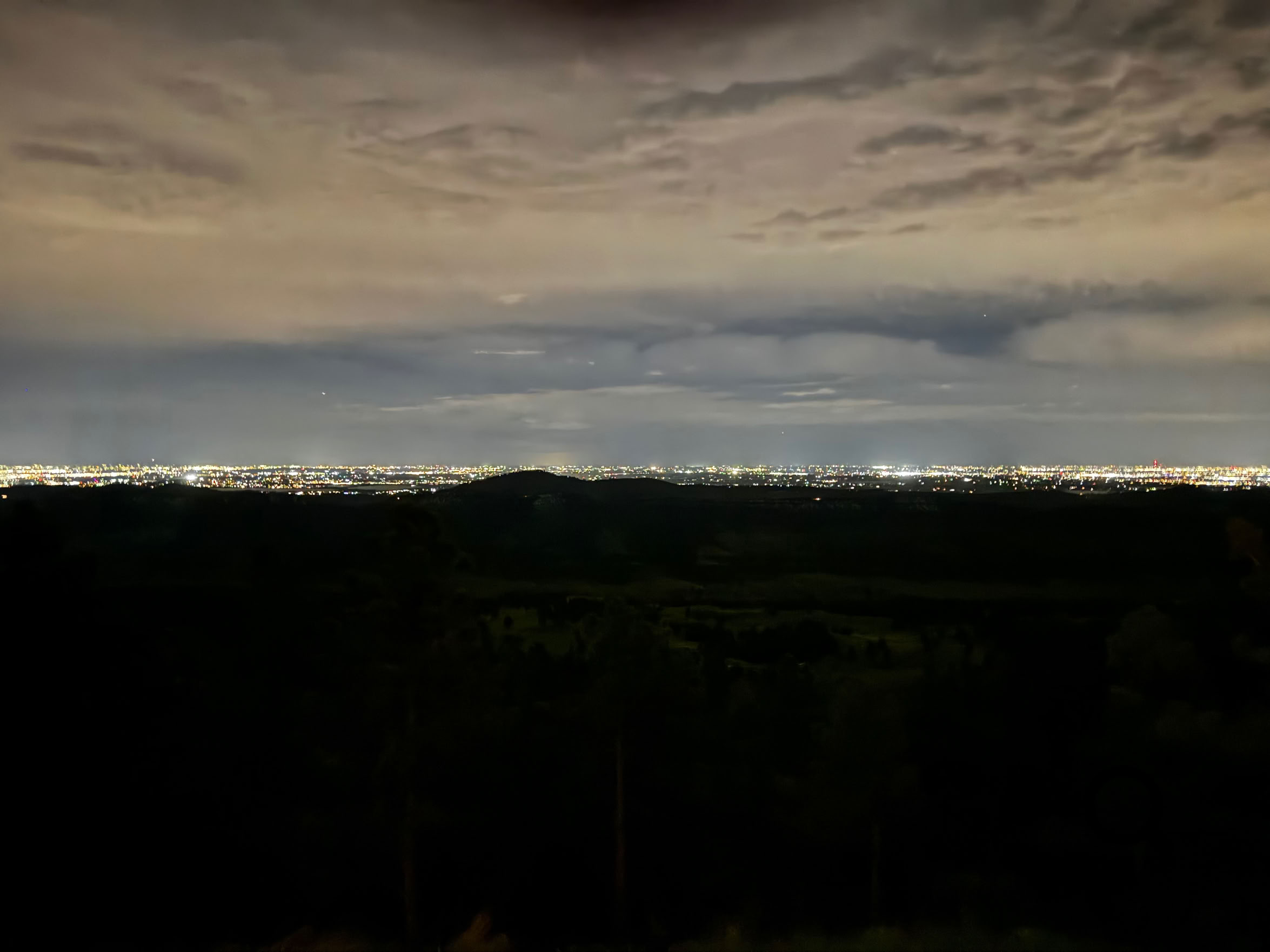 Ooops! I just realized that I’d never taken a night shot of the eastern plains. This was a good deal more difficult than I thought it would be. The iPhone 15 camera usually just turns night into day, but not this time. I had to manually set the exposure time to 1 second. It set the ISO (“film speed”) to 10,000 but unlike an actual piece of film this doesn’t necessarily introduce a lot of noise.