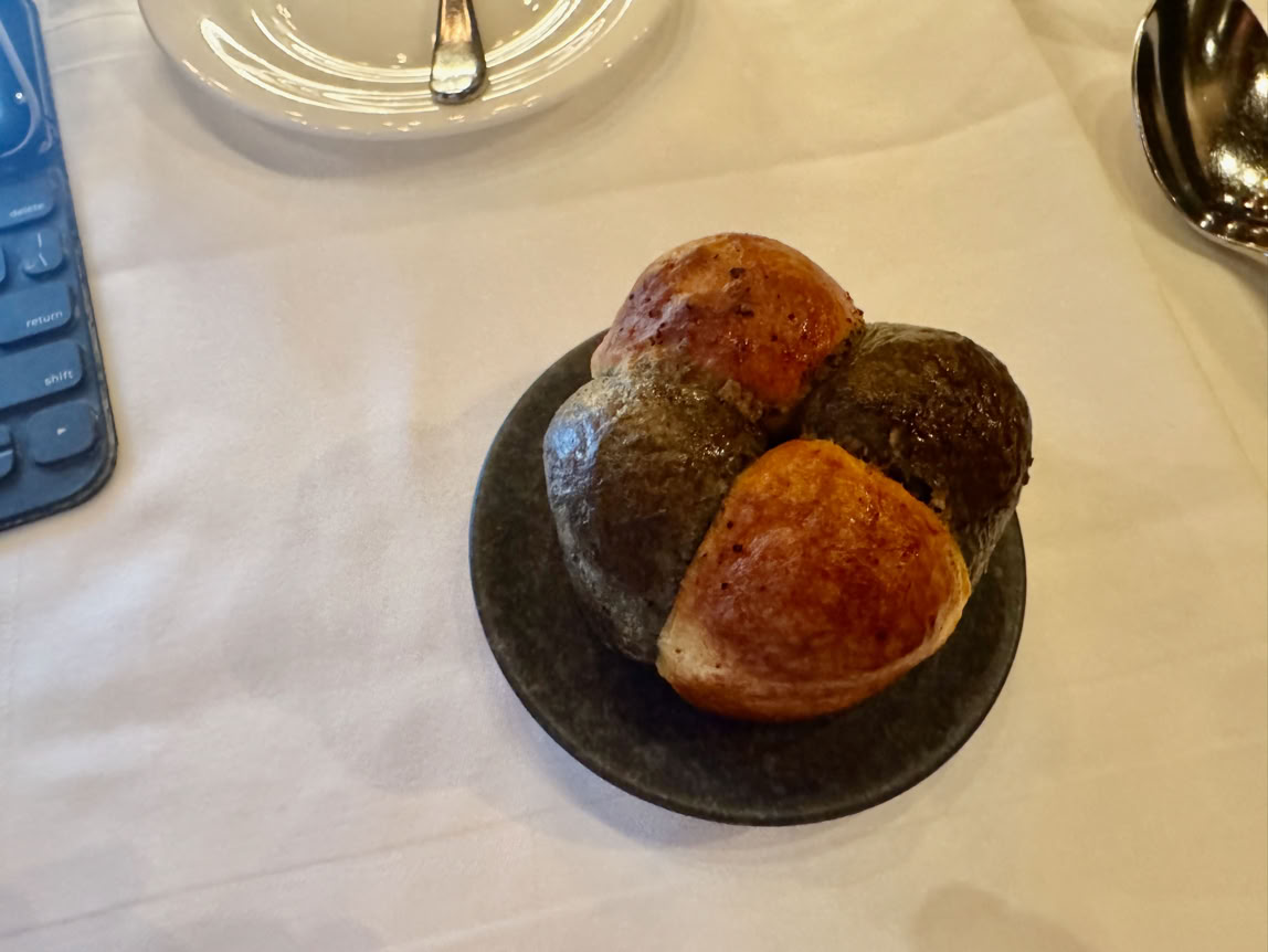 Bill calls this the Bread Intermezzo, since its not on the menu. Two different Brioche breads, whole wheat and white with truffles throughout.