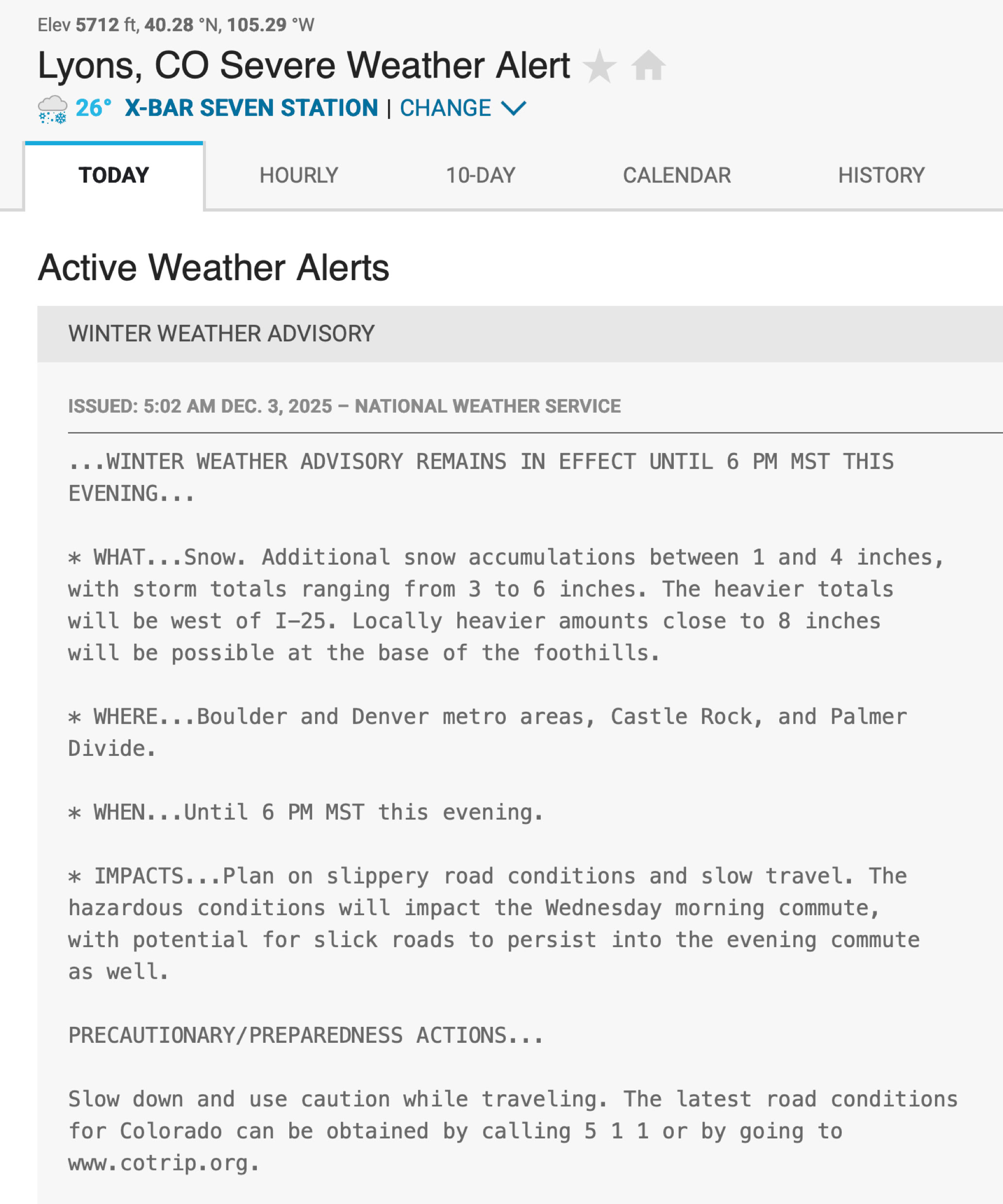 The weather alert had us hoping that the storm would stay south of us, since it didn’t mention Fort Collins or Larimer county.
