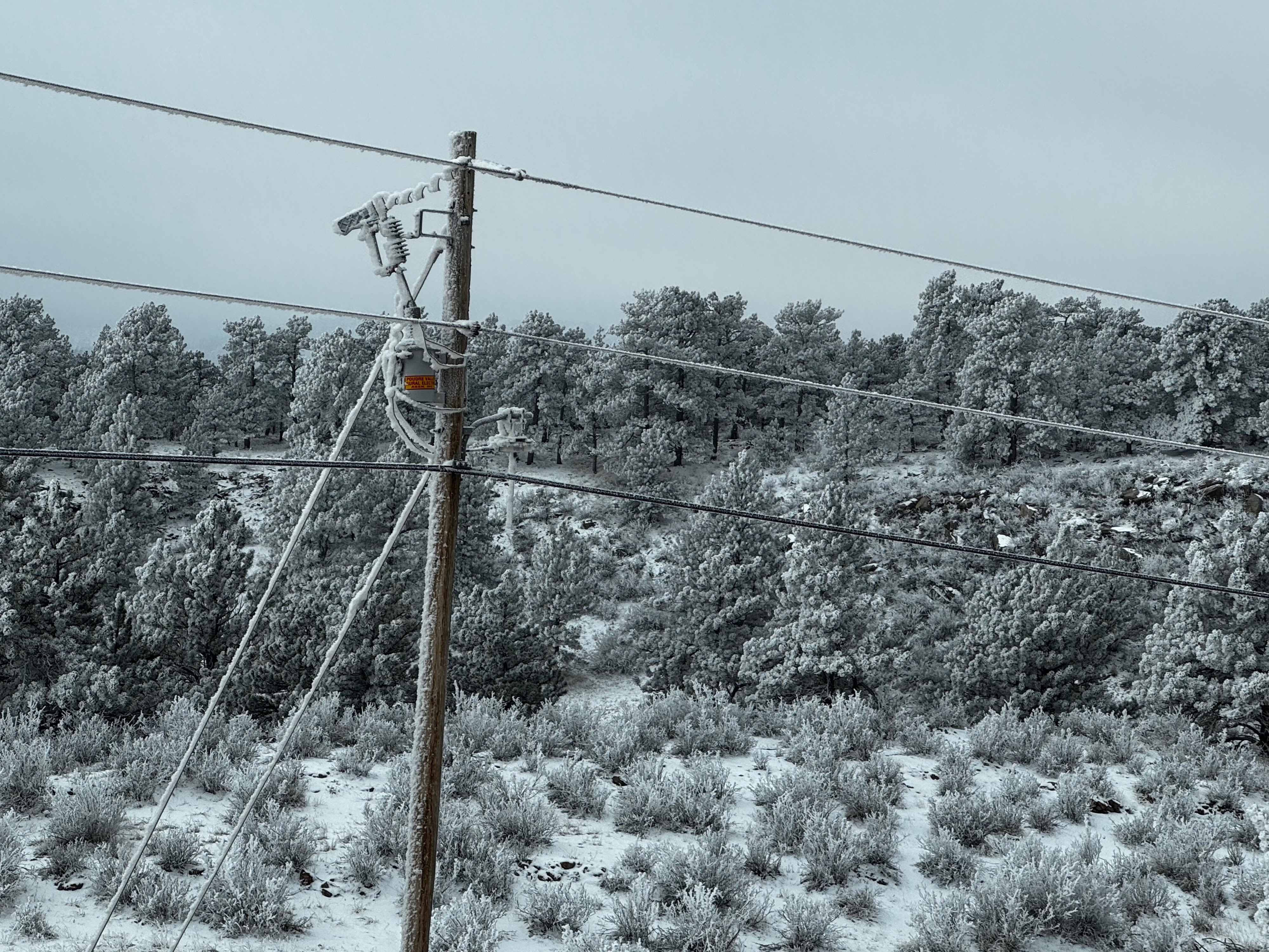Did I shoot this in black and white? Nope, if you look closely, you can see that the power pole is brown, and you can see the orange sticker on the transformer. Every pine needle is coated in snow, that is why you can’t see any green. These photos just give a hint of just how weird this looked.