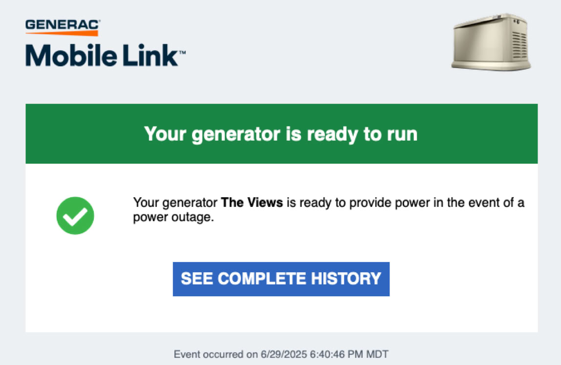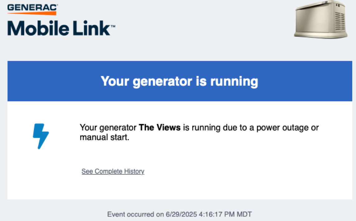 We did discover something interesting. We were watching TV in the grotto when power came back on and the transfer switches activated to switch us back to mains power. The transfer switches are mounted to the Grotto’s north wall in the lower mechanical room so we sit right next to them and they weren’t very loud at all.