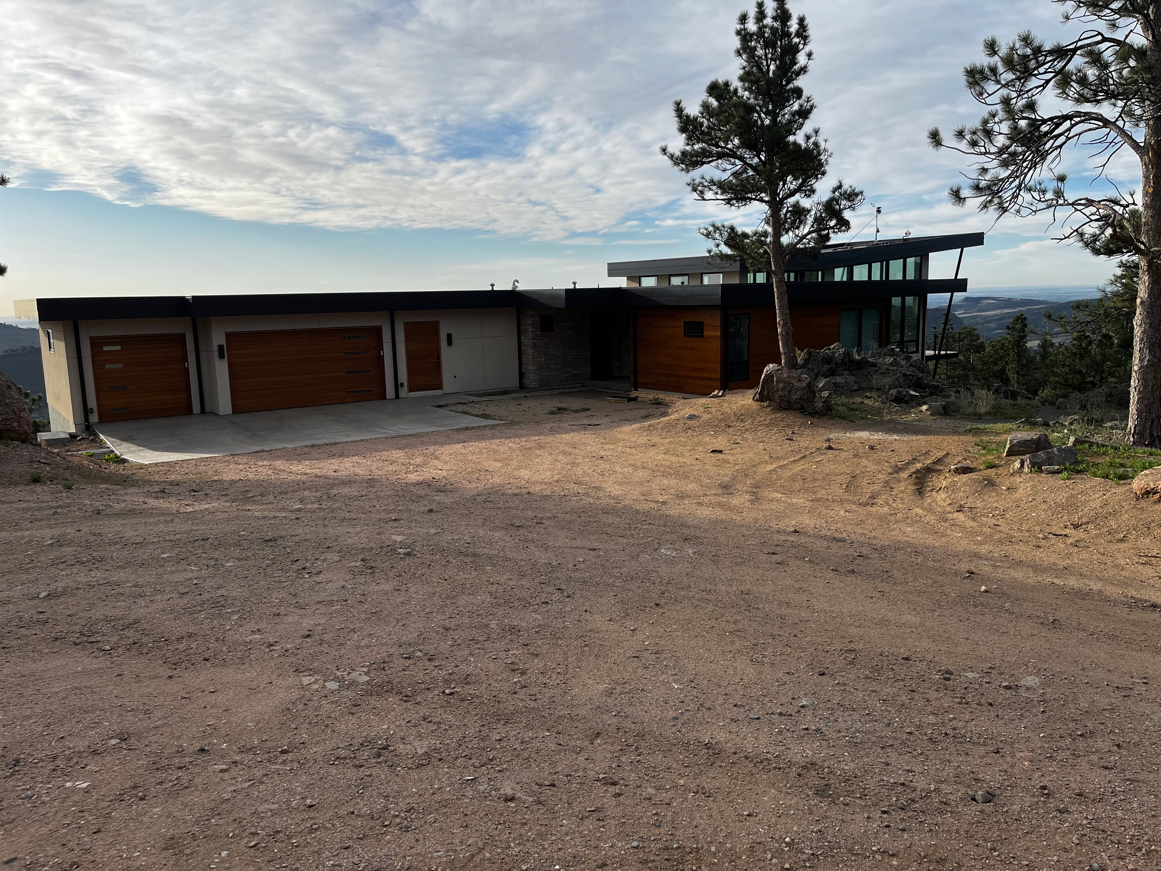 A shot from the middle of the driveway looking north. The foundations for the stairs to the roof have been poured.