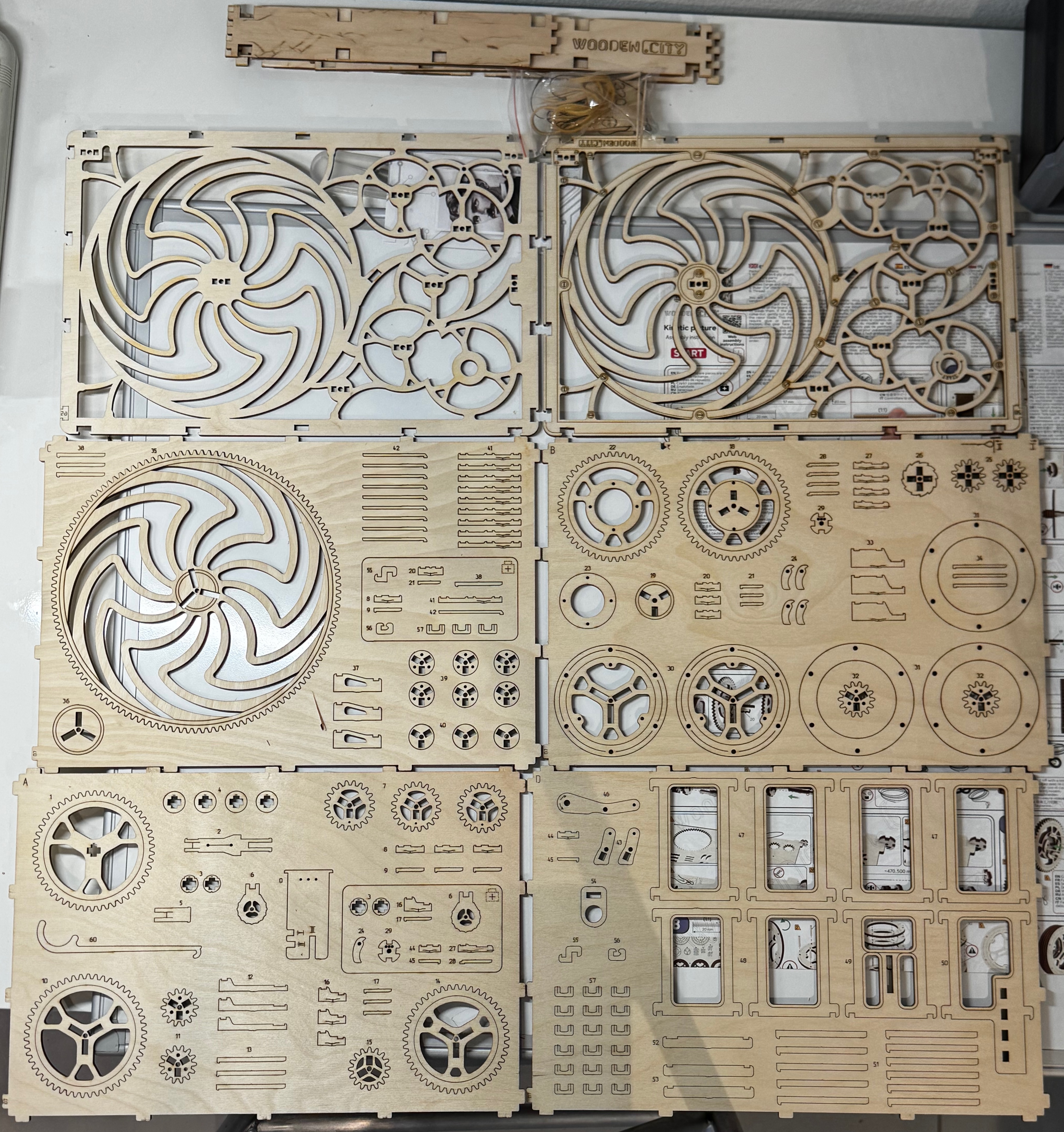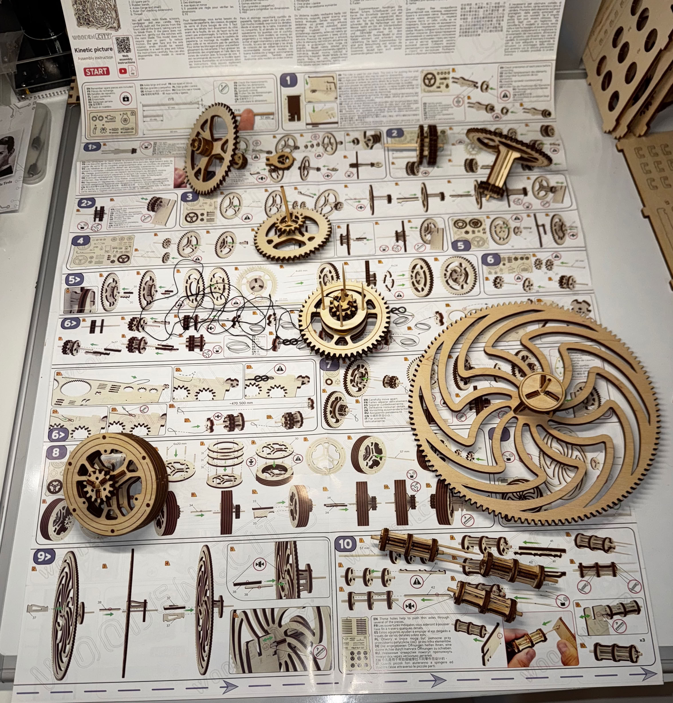 Amy gave Martin a pretty difficult present a while ago. It’s a WOODEN City Kinetic Picture. Martin actually started the build on October 21, 2025 and finished it today. There are only 185 pieces, and, thank goodness it’s only rated at medium difficulty. Martin does not want to attempt a really hard one, like their 3D Locomotive!