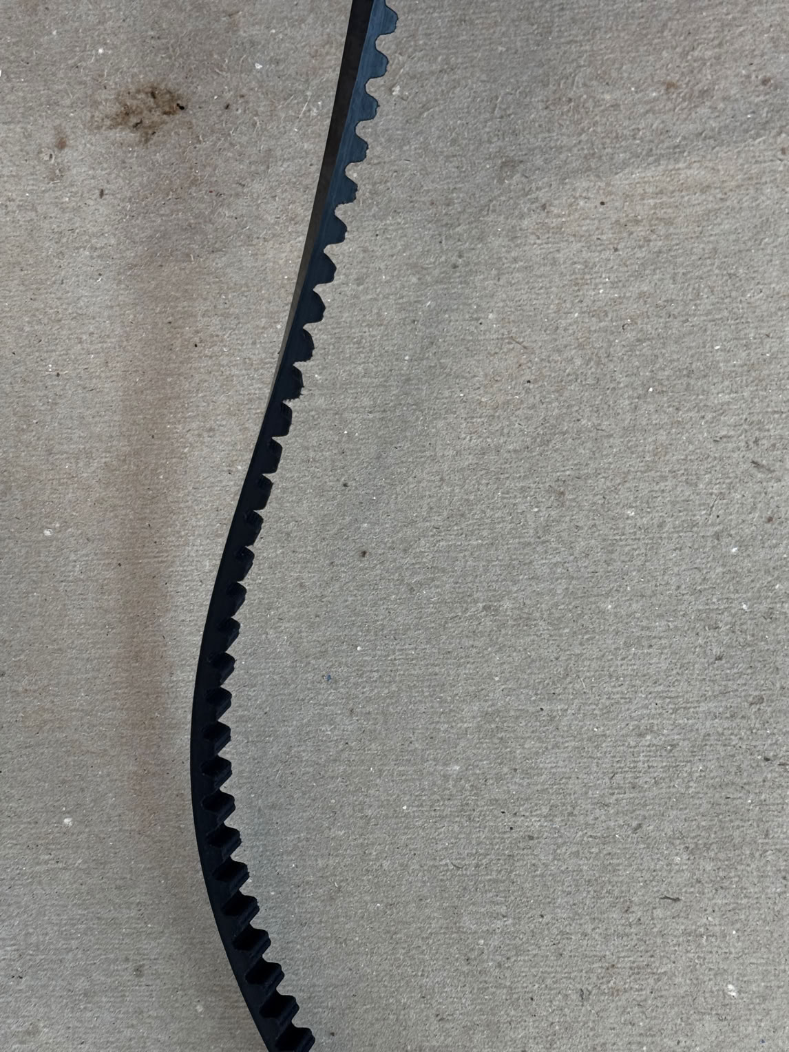 A bit of the cogged belt. This runs from the top to the bottom of the shaft.
