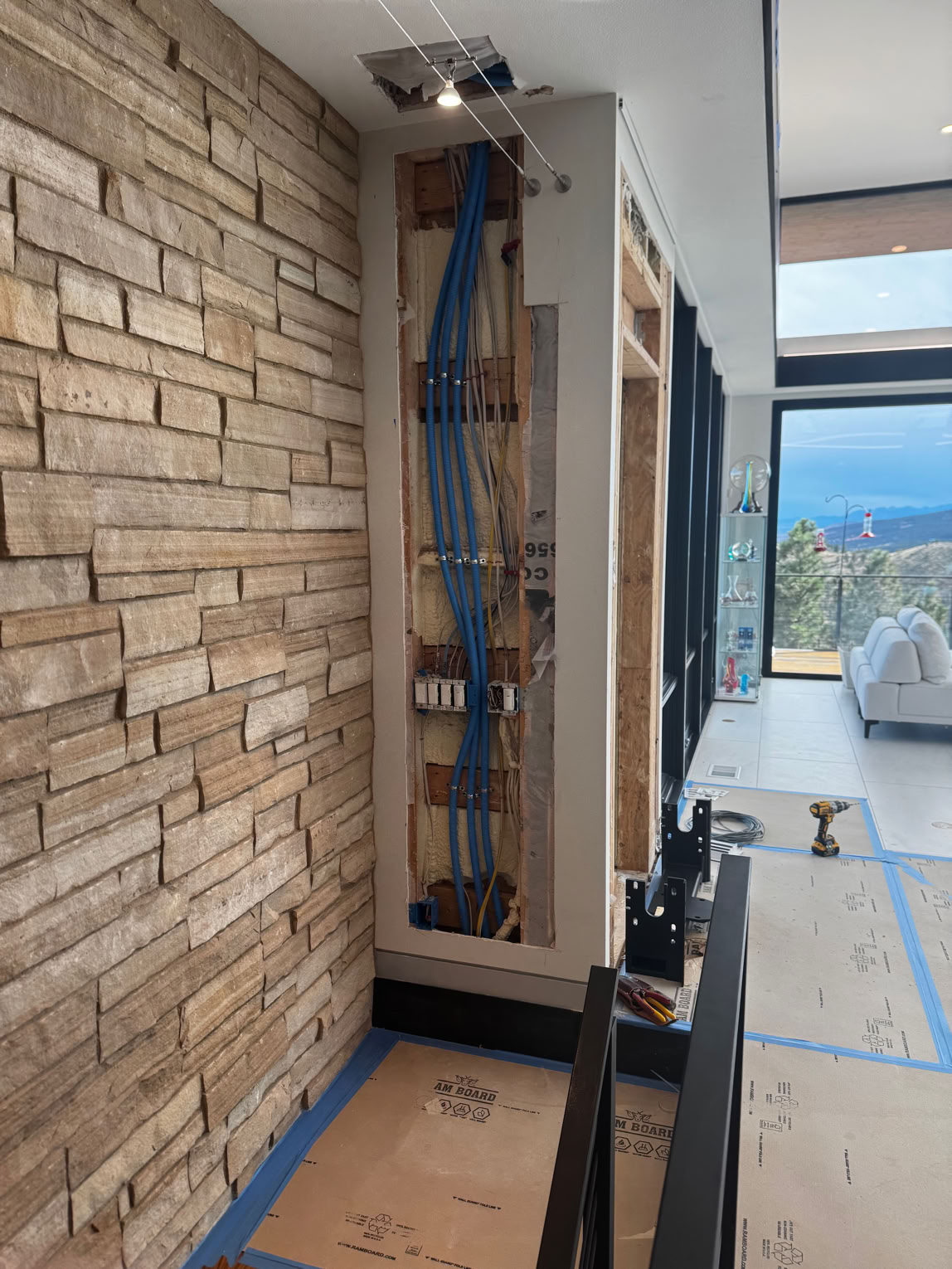 This is looking up at the smurf tubes at the top of the shaft. They run from the control box in the lower floor south guest bedroom to here.