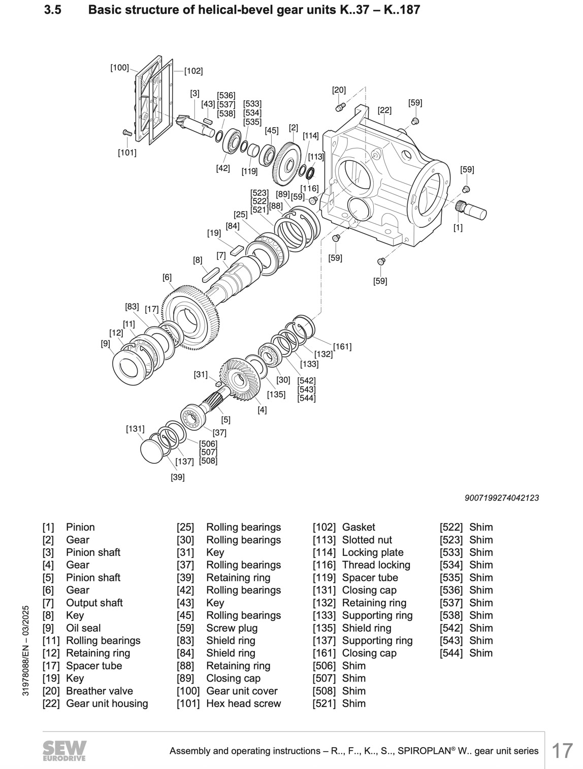 Oddly enough (this took a while for Martin to figure out) they put the model number of the gearbox first, its a KA77B Helical-bevel gearbox