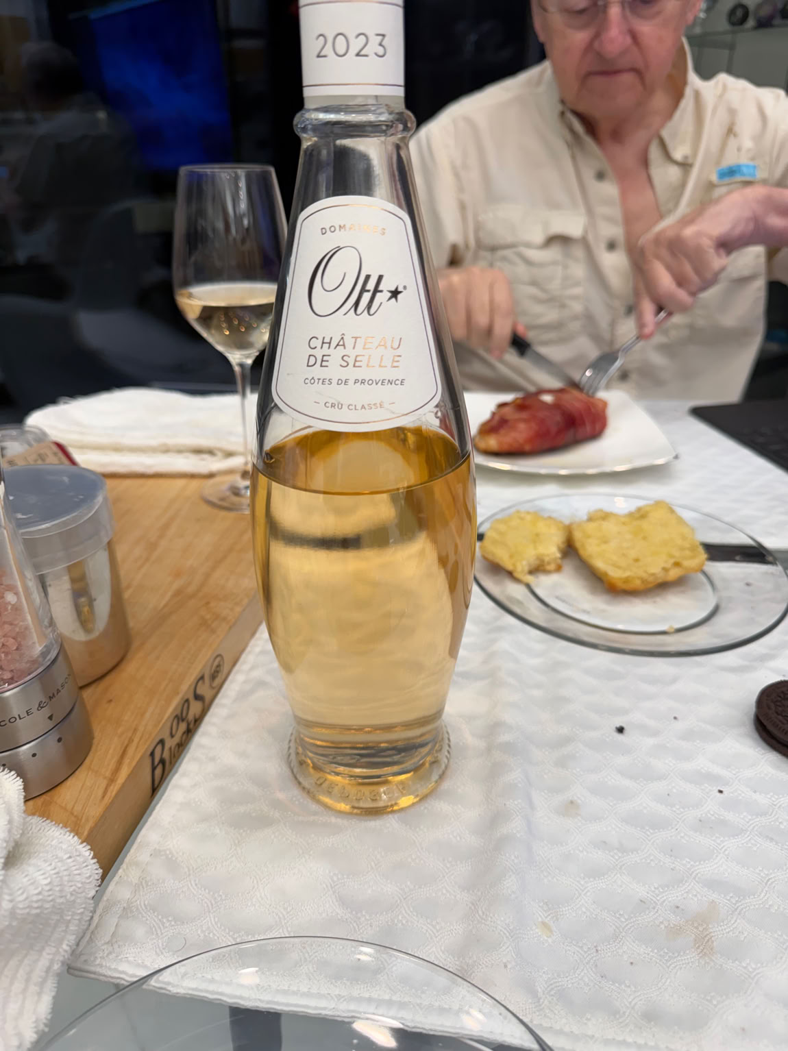 de Selle, 2023. It is a Grenache, Cinsault, Syrah, Mourvèdre blend and went perfectly with the chicken. It’s a really bright, delicate wine that somehow held its own against the smoke. Wine Spectator didn’t rate the 2023 vintage, but Ott’s wines, even though Wine Spectator doesn’t like rosés, still rates it very highly.