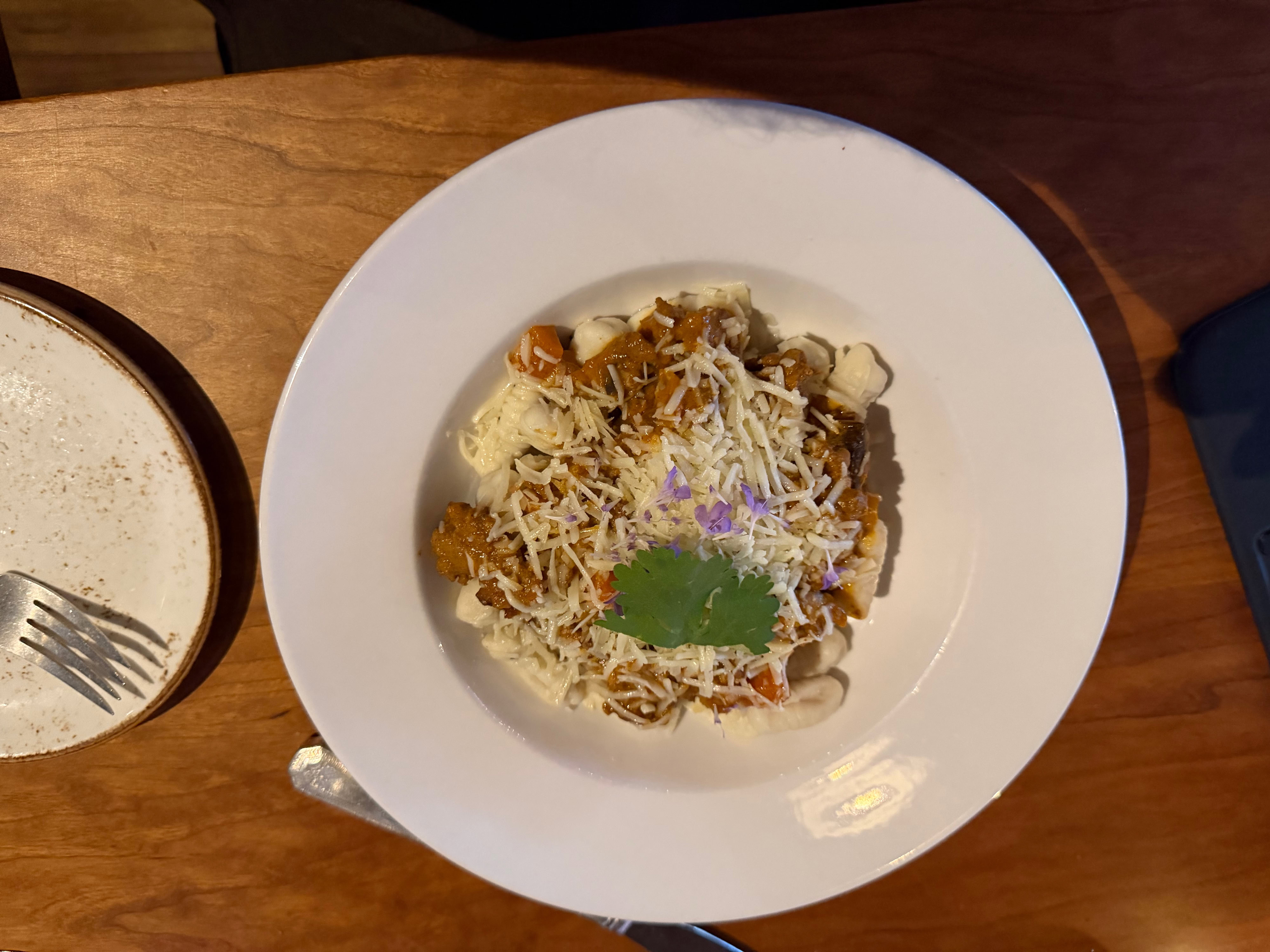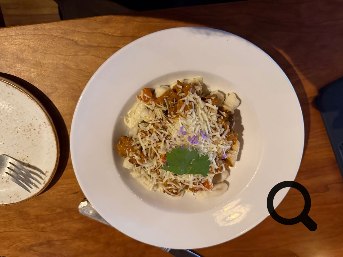 Bill says you can never go wrong with a Bolognese sauce and he’s right. The house made gnocchi really perfected the dish. It’s topped with a farm grown basil leaf, a really big one!