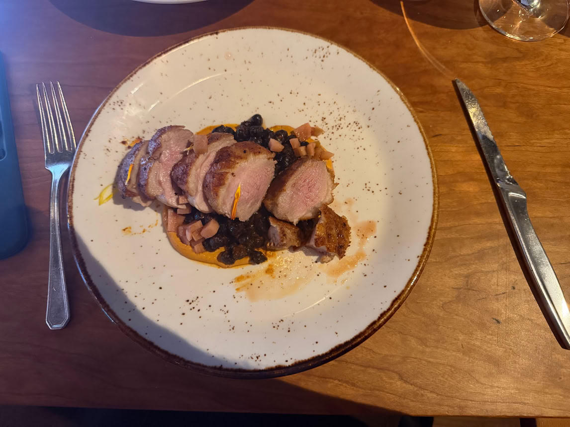 Bill’s Duck Special. That’s a lot of duck! It was very tender, the sauce had a bit of heat to it, which Bill really liked.