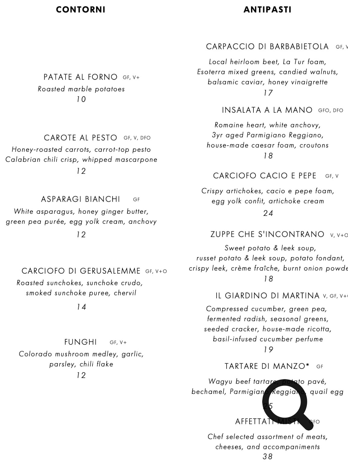 Martin’s first course is the Carciofo Cacio E Pepe. The artichoke looks to be really burned and they called charred artichoke but it’s just delightful. It’s in an artichoke cream sauce which is very mild and then the incredible egg on top of it. It’s just totally amazing and the artichoke heart which isn’t burned is absolutely perfect.