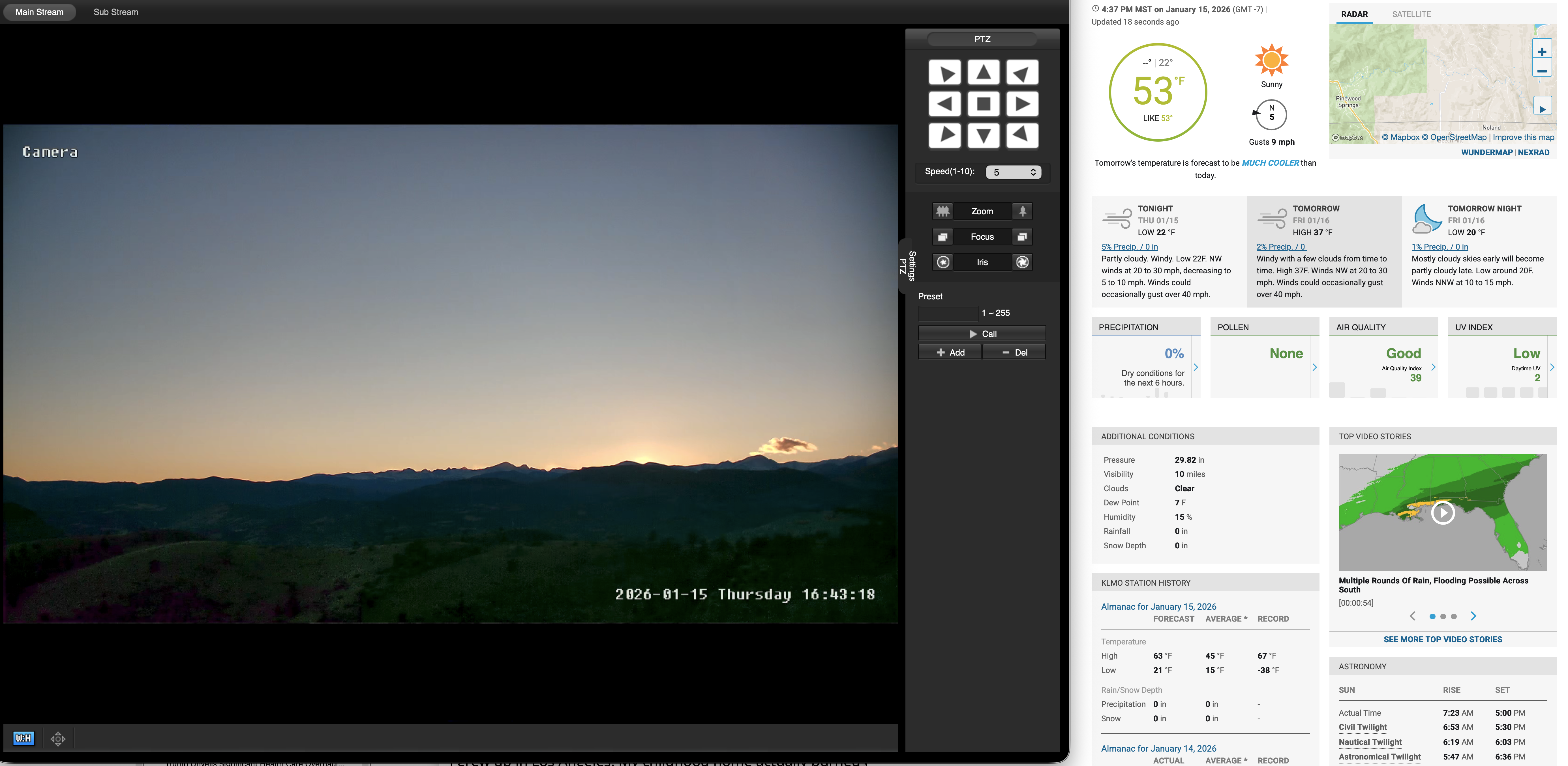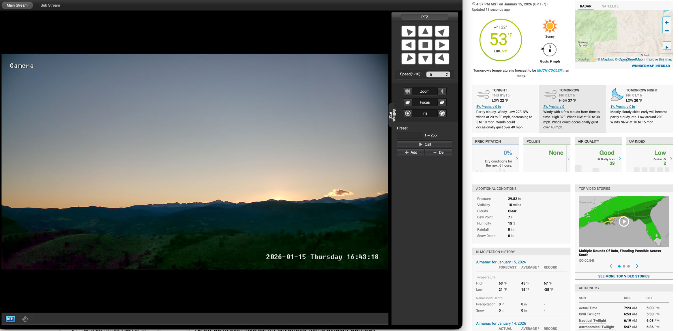 You’ll have to click to open the picture to read the Wunderground page on the right. The sun actually set a few minutes ago about 4:40, a full twenty minutes before the actual time. That’s what happens when you have 14,259 foot tall Long’s peak to the west.
