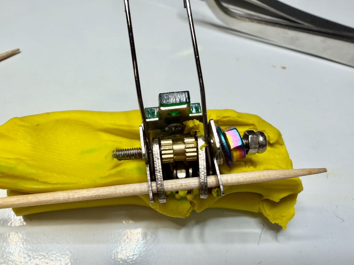 Modeling clay to the rescue! It took Martin a week or so to come up with the modeling clay idea and it worked! There it is, everything but the last 4 pieces held in the exact right position with the modeling clay. the bolt is threaded through.
