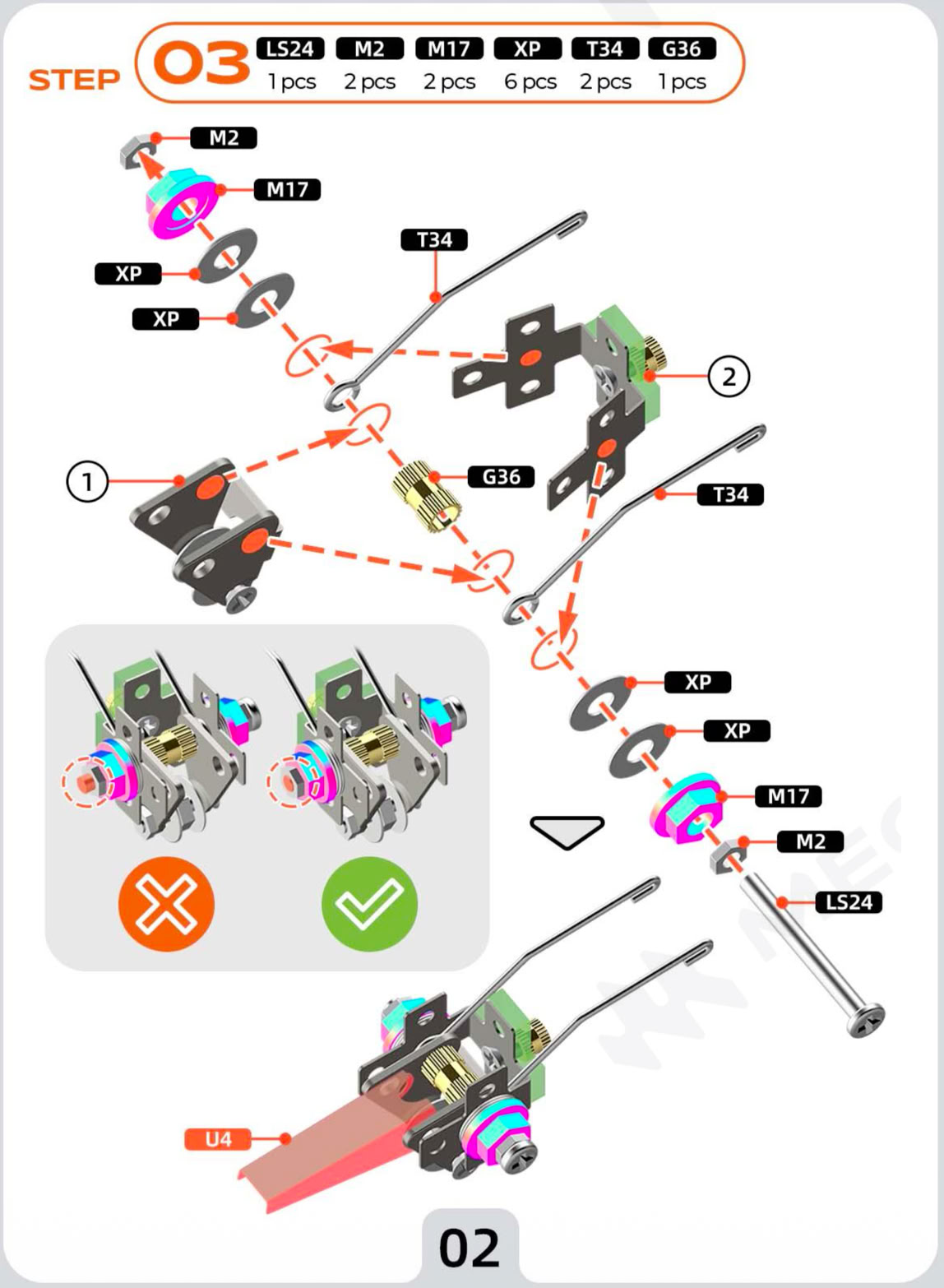 You have got to be kidding me! Twelve pieces and two subassemblies have to have that screw threaded through them??!! That’s simply not possible. U4 isn’t part of this step, you just need to make sure it can fit there.