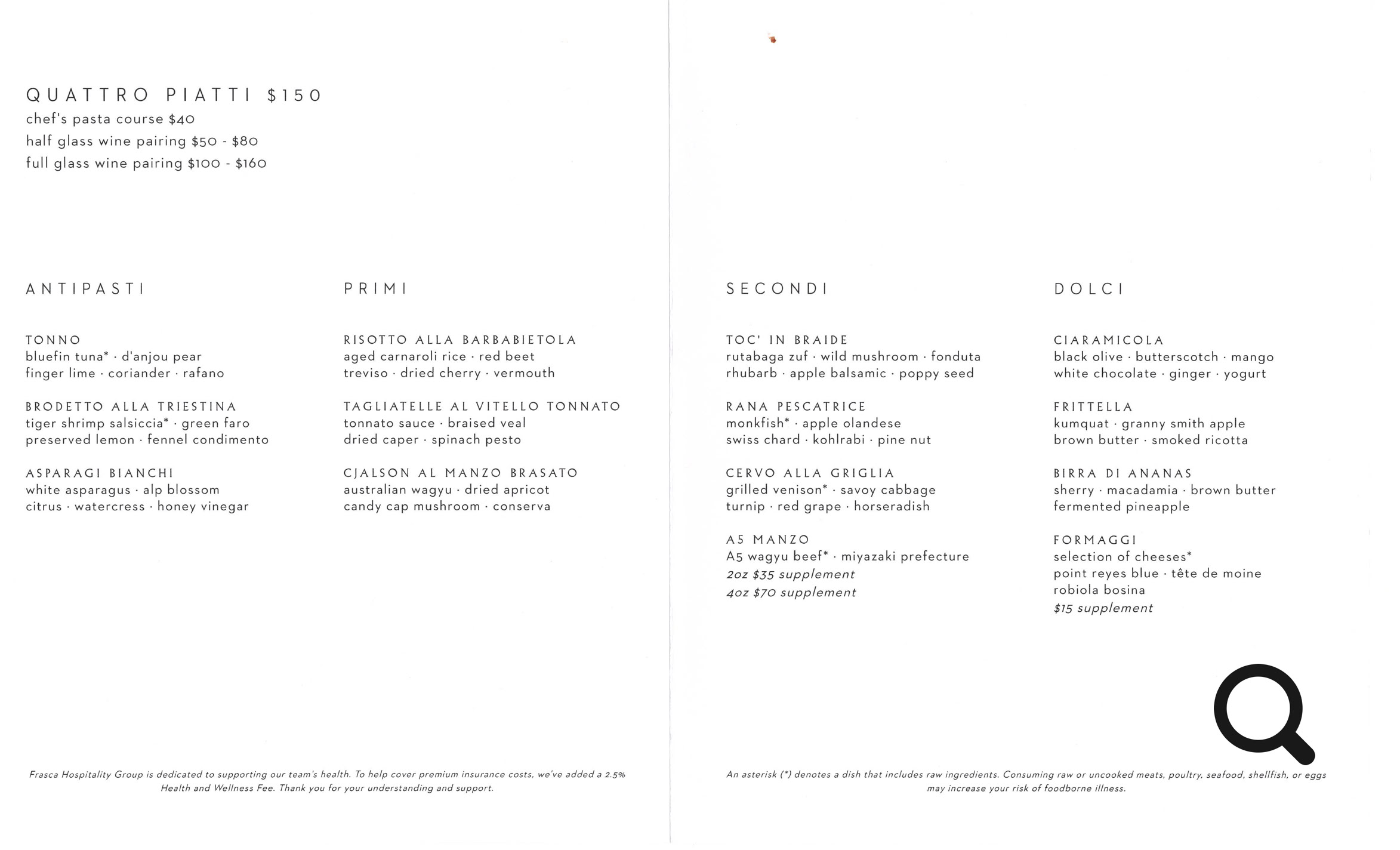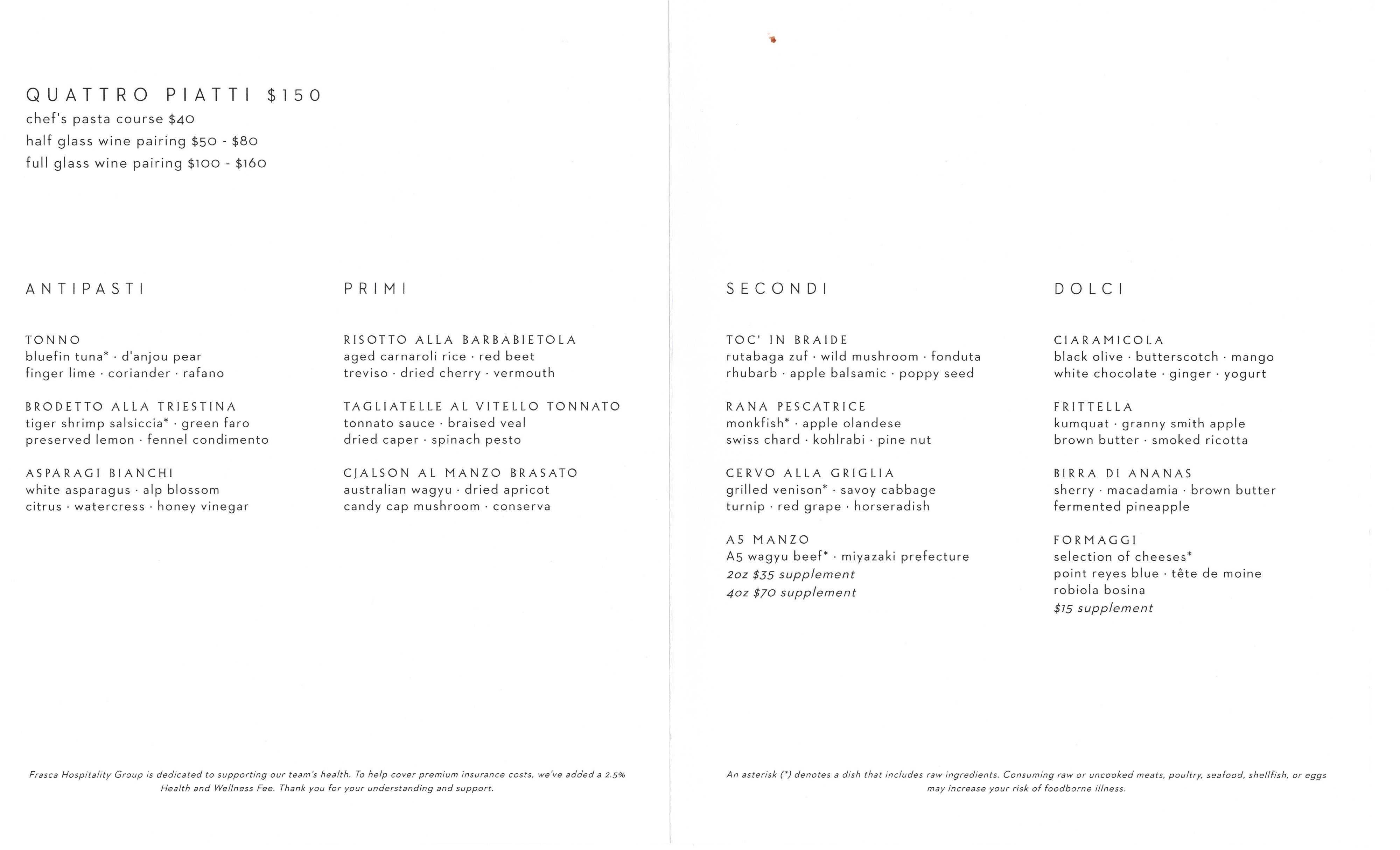 We don’t wait until a special dinner to get to Frasca. Their “regular” dinners are pretty special, after all!