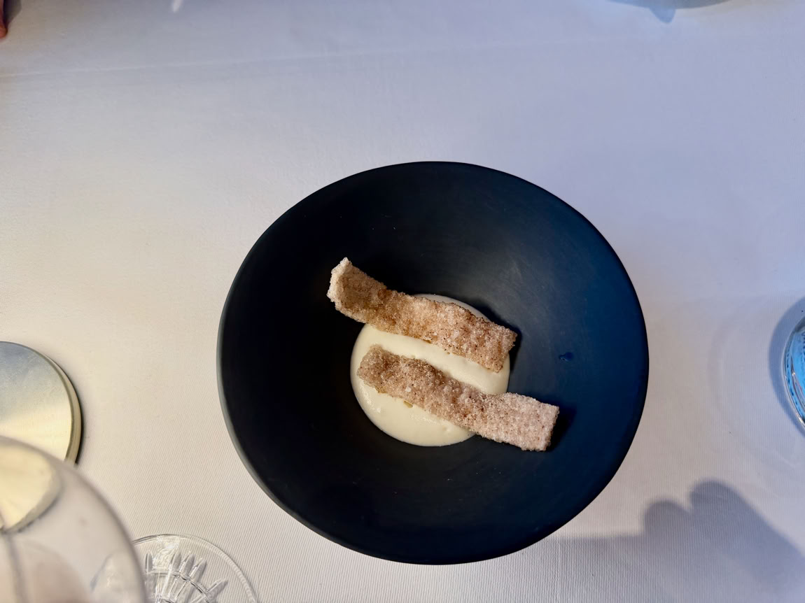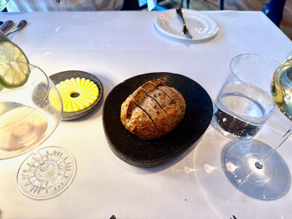 The sourdough uses the chef’s own 9 year old starter. The butter is Rodolphe Le Meunier’s Beurre de Baratte, the two together are heavenly.