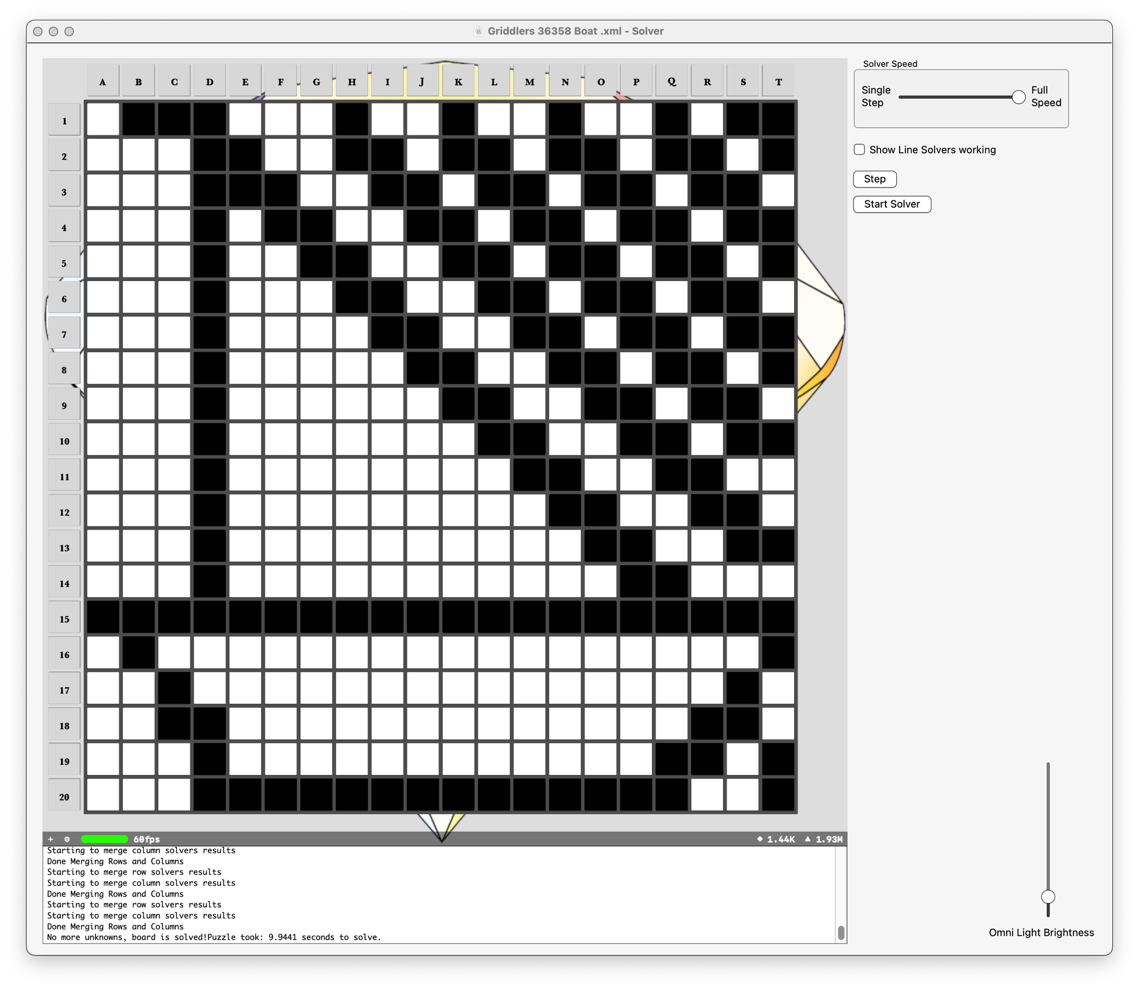 Loaded puzzle from: /Users/mcsandb/Documents/workspace/The Nonogram Project/Documentation/Boards with XML/Griddler 36358 Boat 20 x 20/Griddlers 36358 Boat.xml