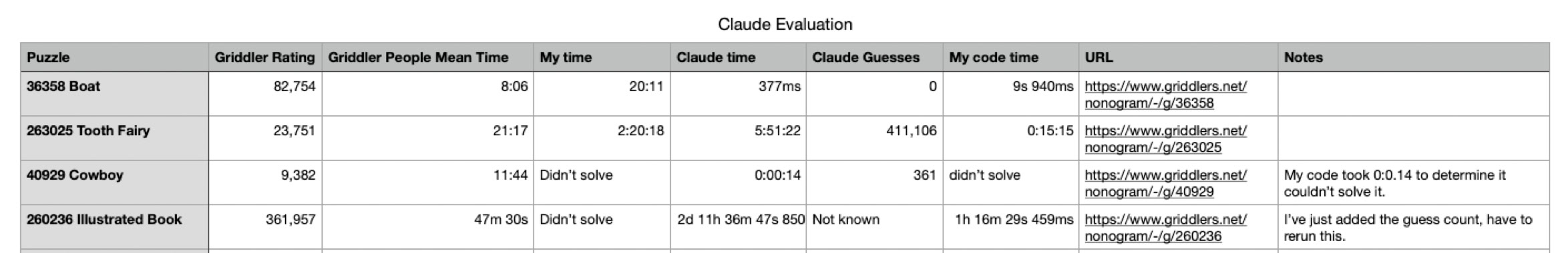 Here’s my code, it took 9.441 seconds, since the Griddlers solver rates their puzzles by how long it takes to solve them, this took it a long time as well. Here’s Claude’s terminal log: