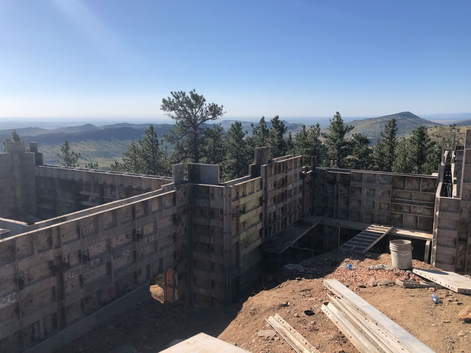 All the way at the south end of the structure. That little bit of wall at the left side is what carries the load of the steel “kicker” down to bedrock. Again, it won’t be filled to the top, it’s just the form size that was available. The walls in the middle are the east side of one of the master bedrooms and the north side of the pool room.