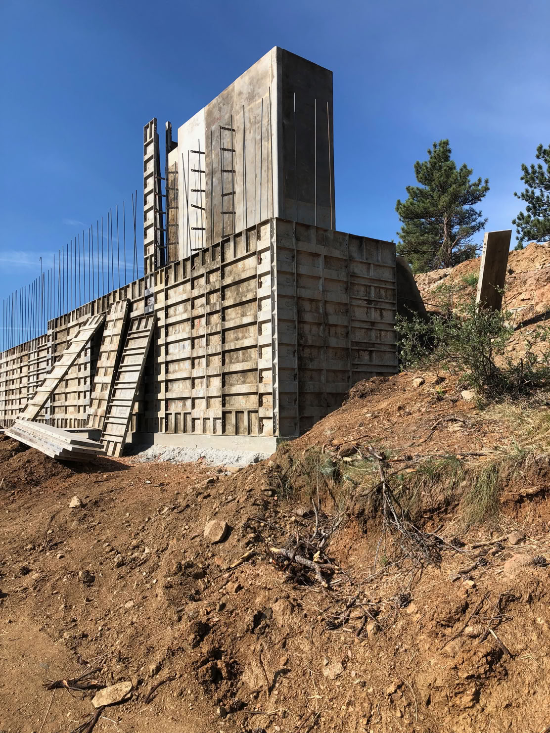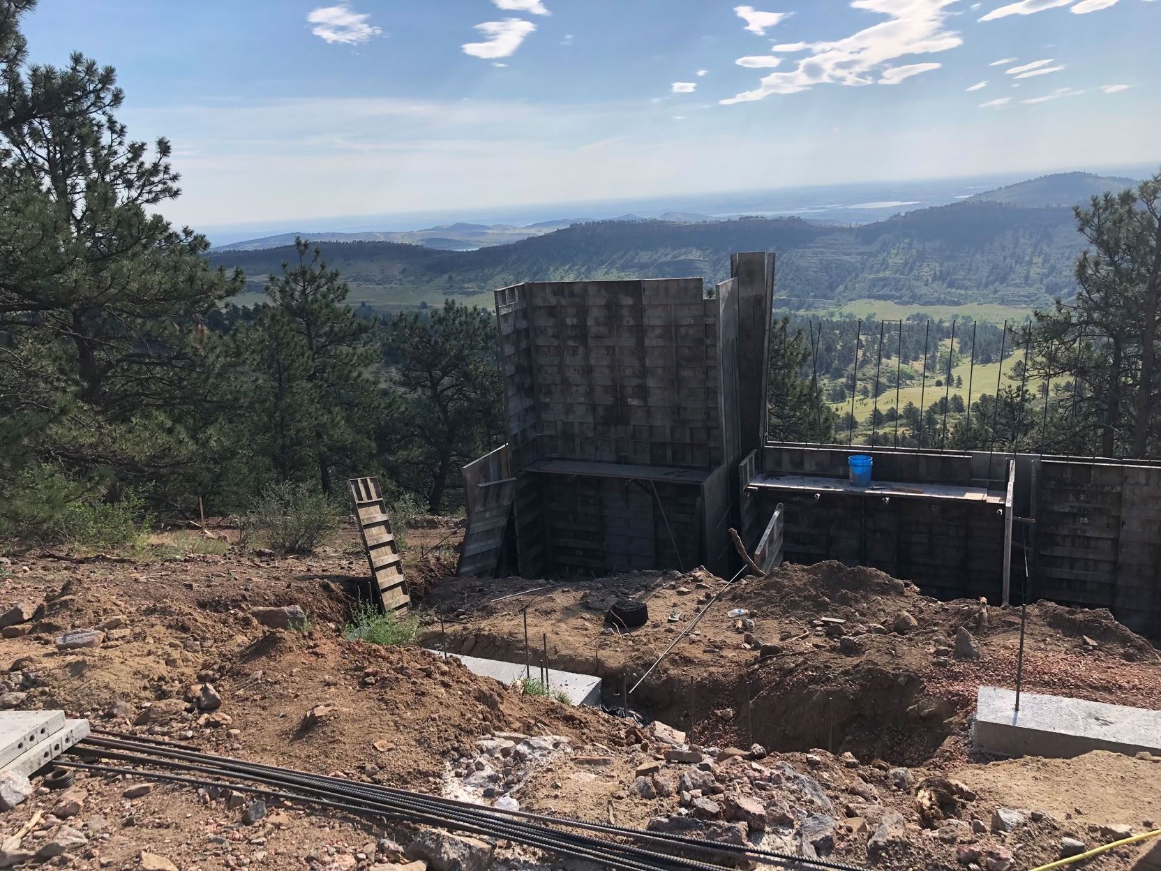 Here’s the tallest walls, the north east corner of the garage, about 15’ tall. The architect balanced the house on the site to balance the cuts and fills required, so we don’t have much wall this high.